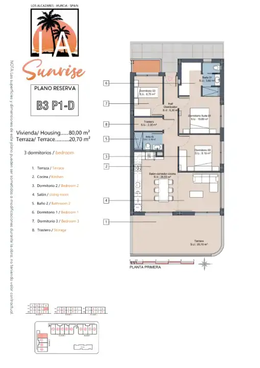 Składający się z 30 apartamentów z niesamowitym widokiem na morze, LA Sunrise oferuje 2 i 3 sypialnie oraz 2 łazienki, jednostki z najwyższej jakości wykończeniami i udogodnieniami, o powierzchni do 85 m2.