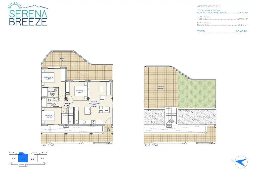 Residencial Serena Breeze znajduje się w Los Alcázares, wyjątkowej okolicy na Costa Cálida, zaledwie 25 minut od lotniska w Murcji i 55 minut od lotniska w Alicante