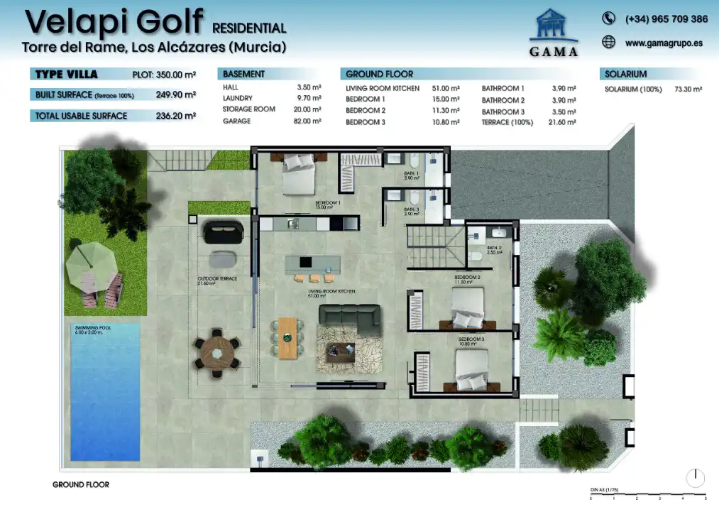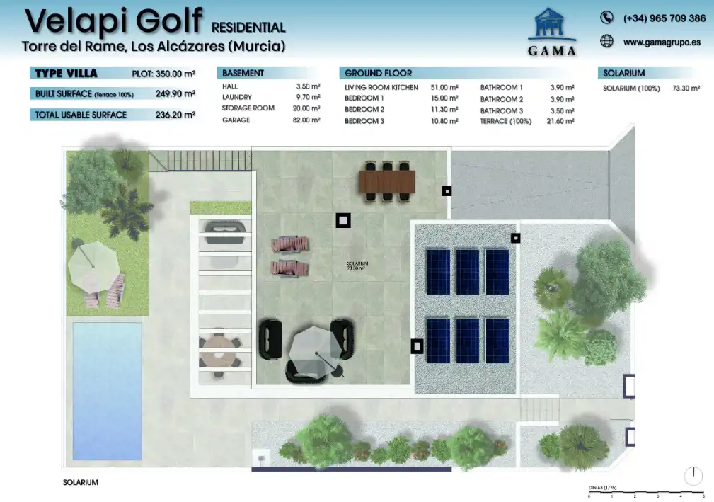 Projekt będzie podzielony na 8 bloków i będzie obejmował 244 apartamenty z 2 i 3 sypialniami, o nowoczesnym wystroju i wykończeniu, zlokalizowane na terenie pola golfowego La Serena, w Los Alcazares. Na parterze znajduje się piękny ogród, niektóre z prywatnym basenem, a na drugim piętrze znajduje się prywatne solarium z dostępem przez wnętrze domu.