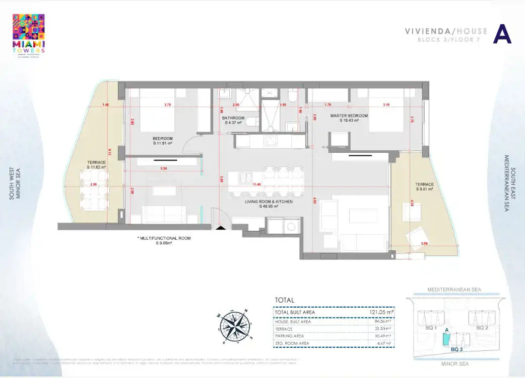 Miami Towers Spain to prestiżowy projekt mieszkaniowy, który harmonijnie łączy ekskluzywny design, luksusowe wnętrza i niesamowitą lokalizację nad morzem. Składający się z trzech dziesięciopiętrowych budynków kompleks oferuje 117 apartamentów o powierzchni około 120 m² oraz tarasy o powierzchni 25 m².
