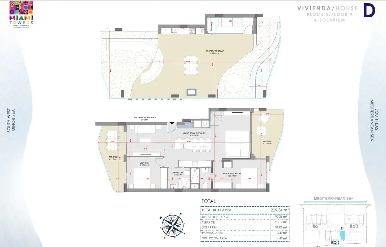 Miami Towers Spain to prestiżowy projekt mieszkaniowy, który harmonijnie łączy ekskluzywny design, luksusowe wnętrza i niesamowitą lokalizację nad morzem. Składający się z trzech dziesięciopiętrowych budynków kompleks oferuje 117 apartamentów o powierzchni około 120 m² oraz tarasy o powierzchni 25 m².