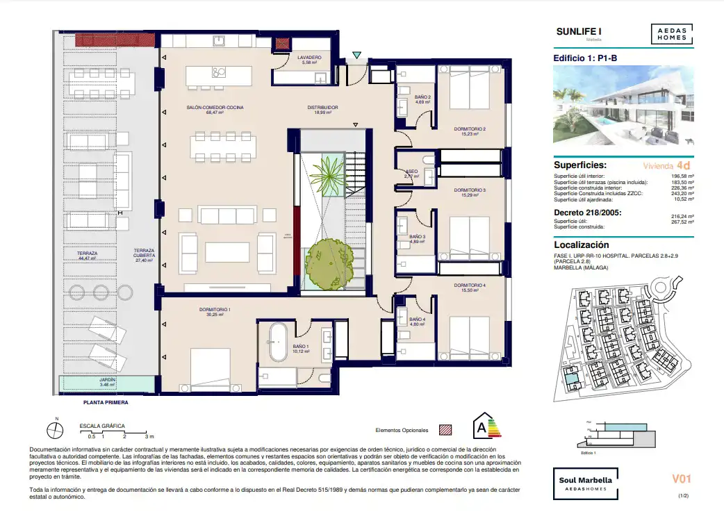 Zaledwie 5 minut od centrum Marbelli, inwestycja zajmuje podwyższone położenie, które gwarantuje zapierające dech w piersiach widoki na Morze Śródziemne. Apartamenty zwrócone na południowy zachód pozwalają cieszyć się optymalnym nasłonecznieniem przez cały dzień.