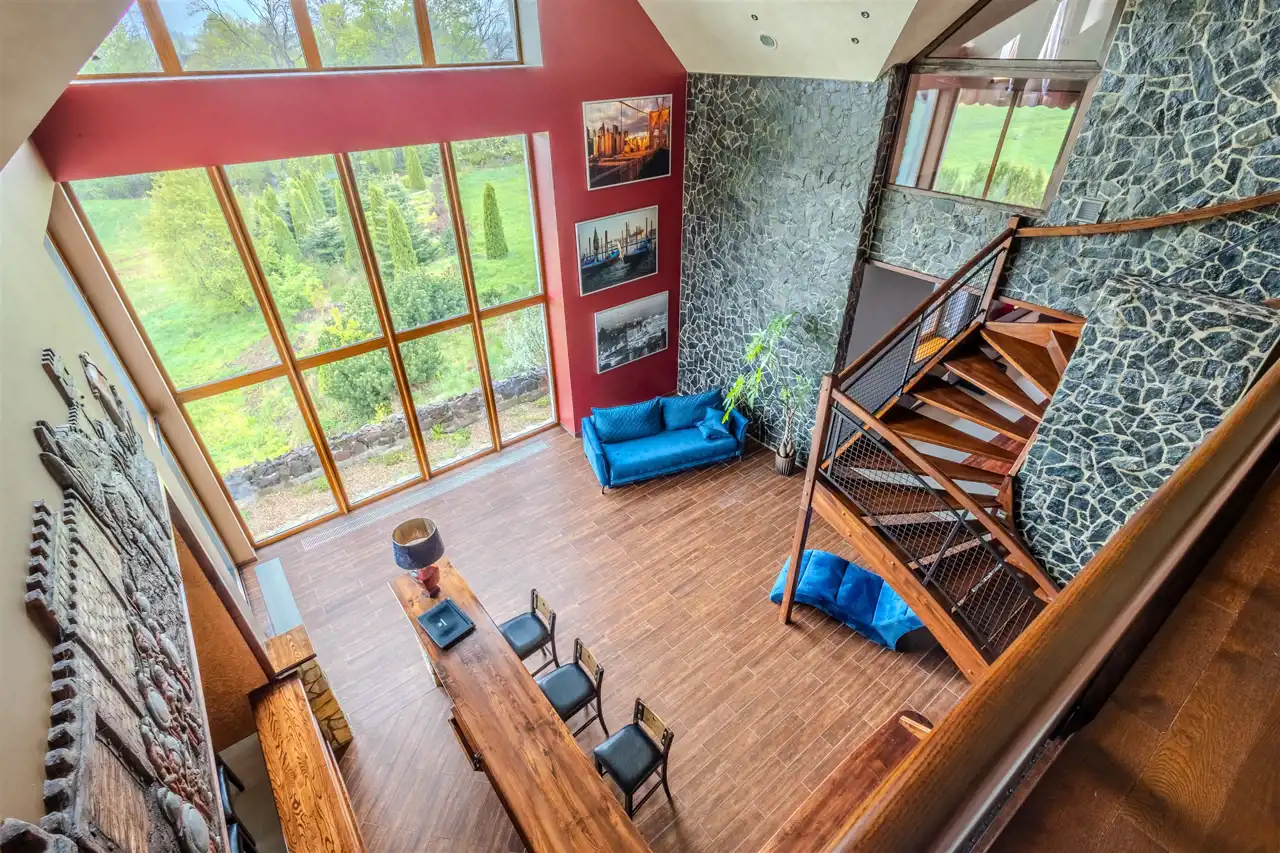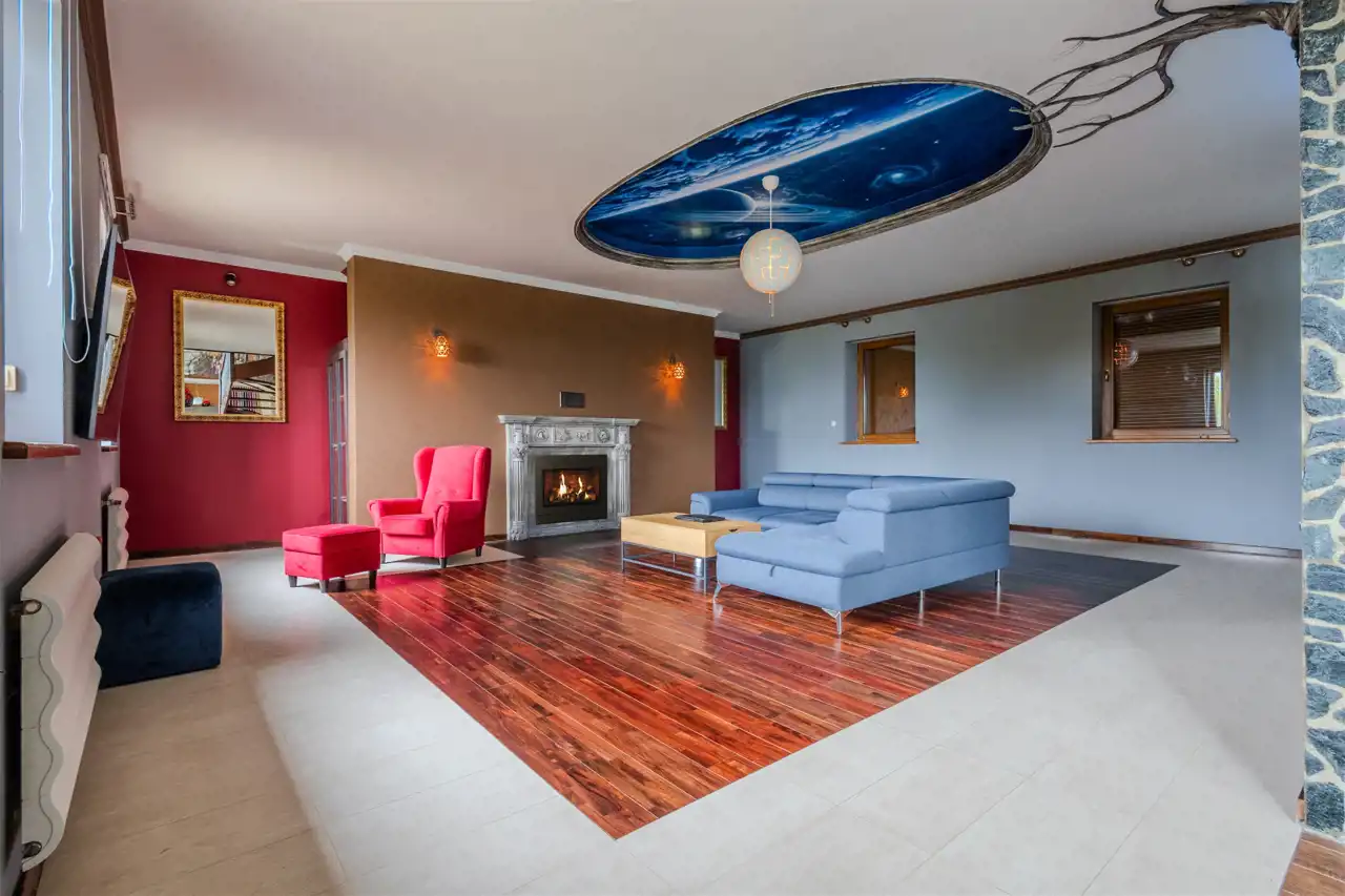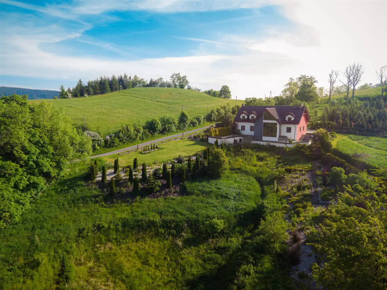 Dodatkowo na terenie działki znajduje się las świerkowy oraz sad owocowy. Z dużego tarasu w ogrodzie od strony zachodniej widok na góry i łąki na których wypasają się sarenki. Świeże powietrze, cisza i cudowne widoki sprawiają, że po dniu pracy można się zrelaksować i odpocząć w ogrodzie na łonie natury. Jest to unikatowa nieruchomość w stylu eleganckim i luksusowym w przystępnej cenie wraz z wyposażeniem.