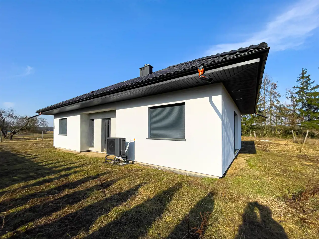- Media Ogrzewanie: pompa ciepła; Woda: jest; Kanalizacja: tak; Prąd: jest; Gaz: brak
