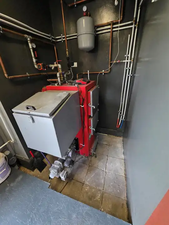 Kotłownia o pow. 8m2 piec na ekogroszek, wyjście na zewnątrz