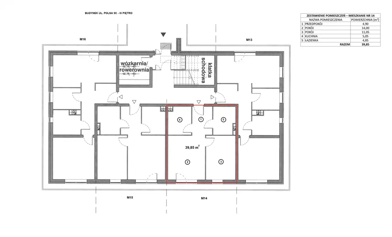 Powierzchnia lokalu mieszkalnego wynosi 39,85 m2, w skład którego wchodzi: