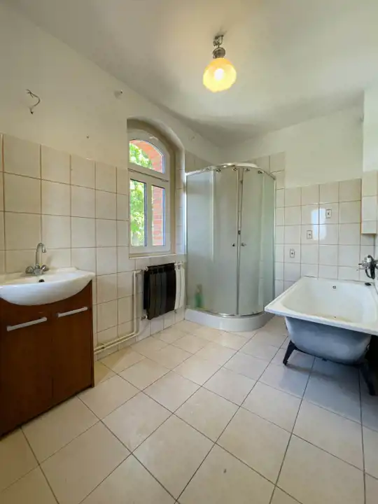 Mieszkanie znajduje się na parterze kameralnej kamienicy i wymaga wykończenia, co daje nowemu właścicielowi pełną swobodę w kształtowaniu wnętrza zgodnie z własnym gustem i potrzebami. W lokalu wymieniono wszystkie okna, a za ogrzewanie odpowiada własny, dwufunkcyjny kocioł gazowy - niskie koszty ogrzewania.