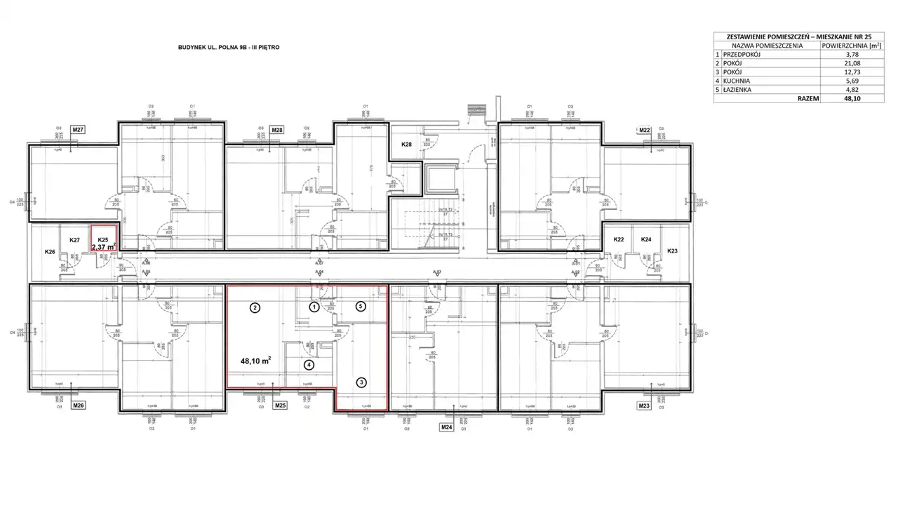 - Charakterystyka mieszkania 48.1 m2, 2 pokoje