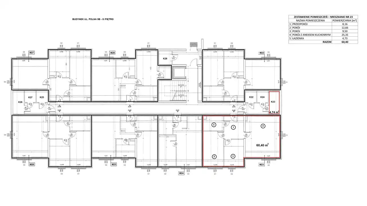 - Charakterystyka mieszkania 60.4 m2, 3 pokoje