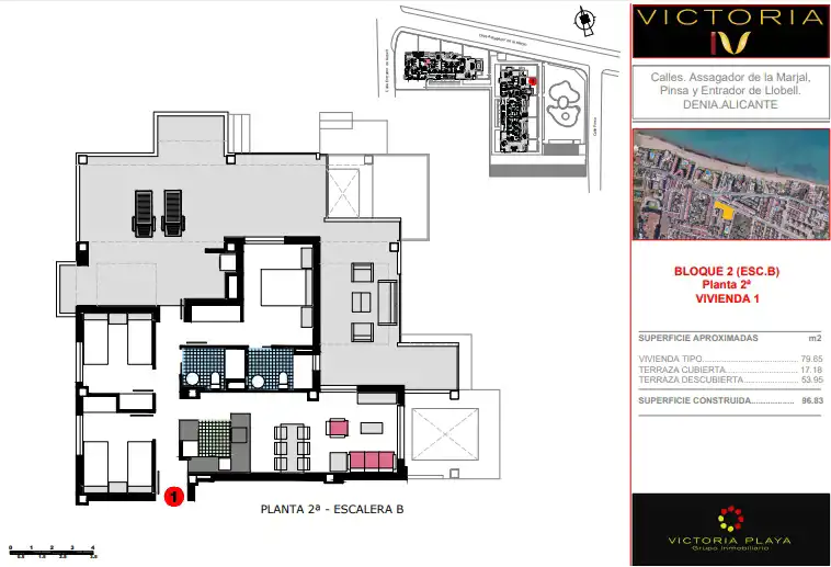 Nowoczesny kompleks mieszkaniowy VICTORIA IV, położony w Denia, doskonale zintegrowany z uprzywilejowanym otoczeniem i otoczony spektakularnym krajobrazem, zaledwie 2 km od centrum miasta i 100 m od jednej z najlepszych plaż Morza Śródziemnego. Będzie ich 29 Apartamentów z 2 i 3 sypialniami. Prywatne, zamknięte osiedle ze wspólnymi ogrodami i basenem dla dorosłych i dzieci.