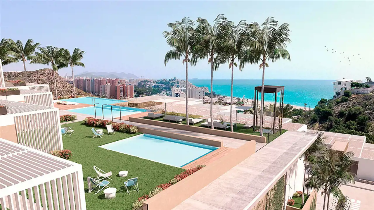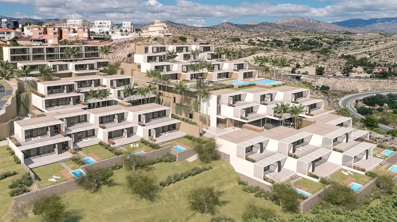Nowo rozpoczęta inwestycja luksusowych apartamentów oplatających wzgórze za miastem Villajoyosa.