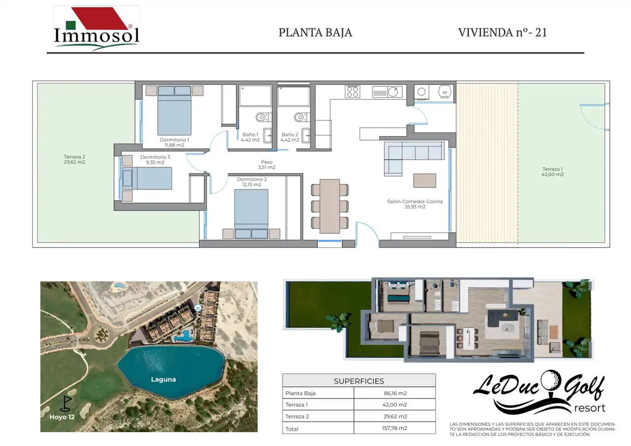 W LeDuc Golf Resort będziesz mieć dom swoich marzeń zaledwie kilka minut od jednych z najpiękniejszych plaż na Costa Blanca, centrum Benidorm, różnych pól golfowych oraz wszystkich restauracji i sklepów w Finestrat-Benidorm. Ponadto posiada doskonałe połączenie z lotniskiem w Alicante oraz dworcem kolei dużych prędkości.