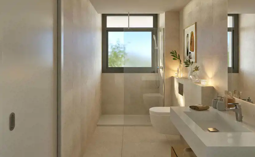 Ta oferta dotyczy apartamentu z 2 sypialniami i 3 łazienkami, o powierzchni mieszkalnej 80 m2 oraz 64m2 powierzchni tarasów.