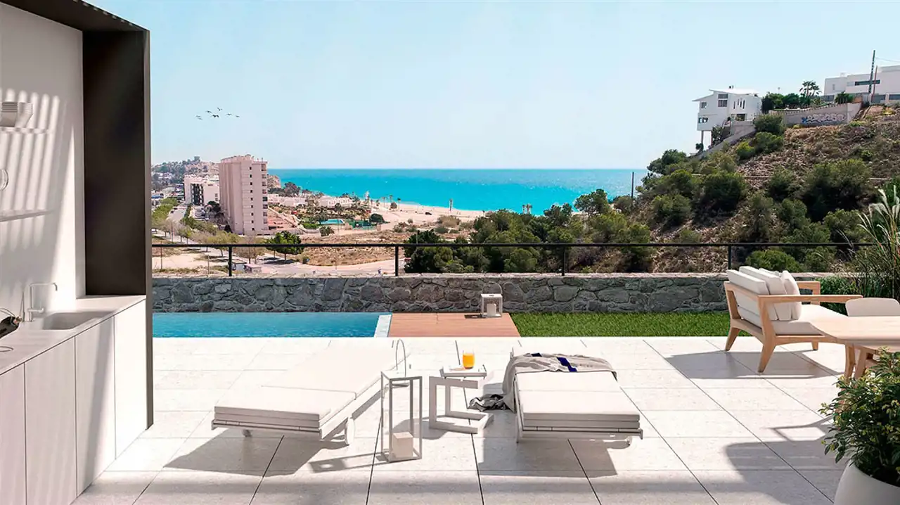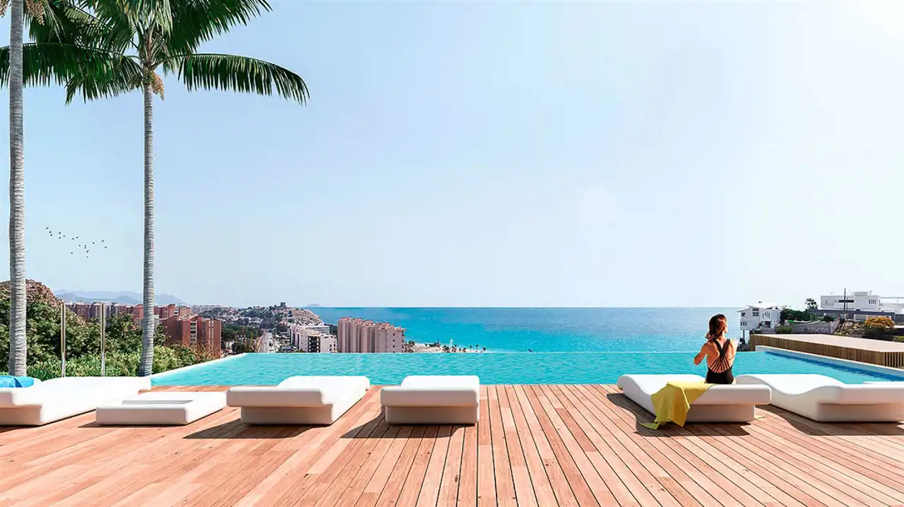 Nowo rozpoczęta inwestycja luksusowych apartamentów oplatających wzgórze za miastem Villajoyosa.