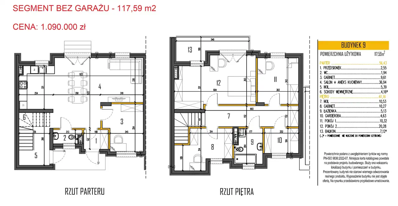 - segment dwupoziomowy bez o powierzchni 117,59 m2 w cenie 1090000 zł