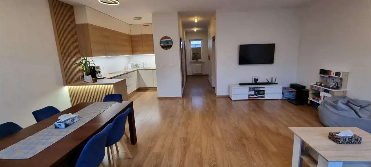 Mieszkanie zostało starannie zaprojektowane, wykonane w materiałach wysokiej jakości, zapewniając komfort oraz funkcjonalność, idealne dla rodziny szukającej przestronności oraz prywatności. Istnieje także możliwość przearanżowania nieruchomości tak, by powstały dwa niezależne mieszkania.