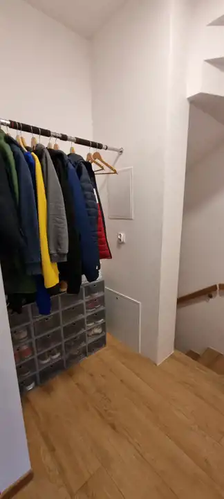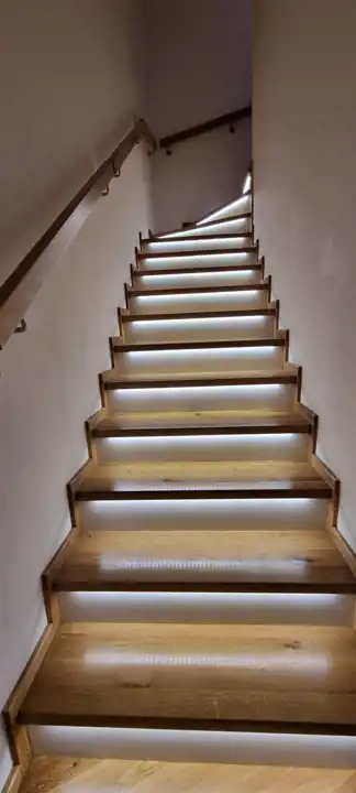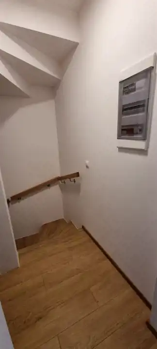 • Schody II: wykonane na zamówienie wysokiej jakości dębowe schody z oświetleniem led i drewnianymi pochwytami. Wysoka przestrzeń nad schodami pozostawia możliwość dobudowania dodatkowego schowka w razie potrzeby.