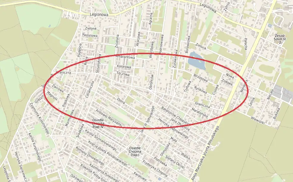 Oferujemy do sprzedaży działkę inwestycyjną o powierzchni 1240 m2, zlokalizowaną w Markach (Struga), w rejonie ulicy Granicznej.