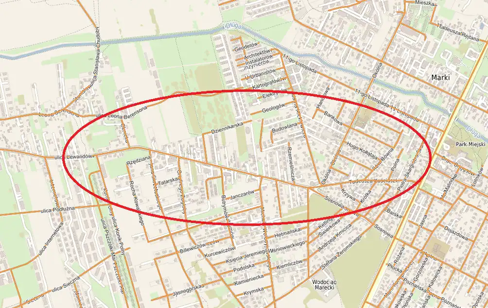 Oferujemy do sprzedaży działkę inwestycyjną o powierzchni 6293 m2, zlokalizowaną w Markach, w rejonie ul. Kościuszki.