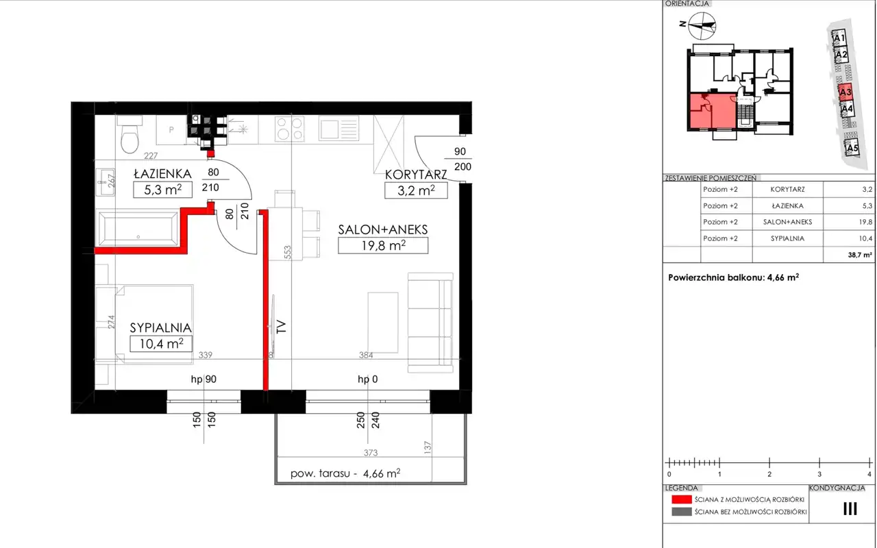 - Charakterystyka mieszkania 38.9 m2, 2 pokoje