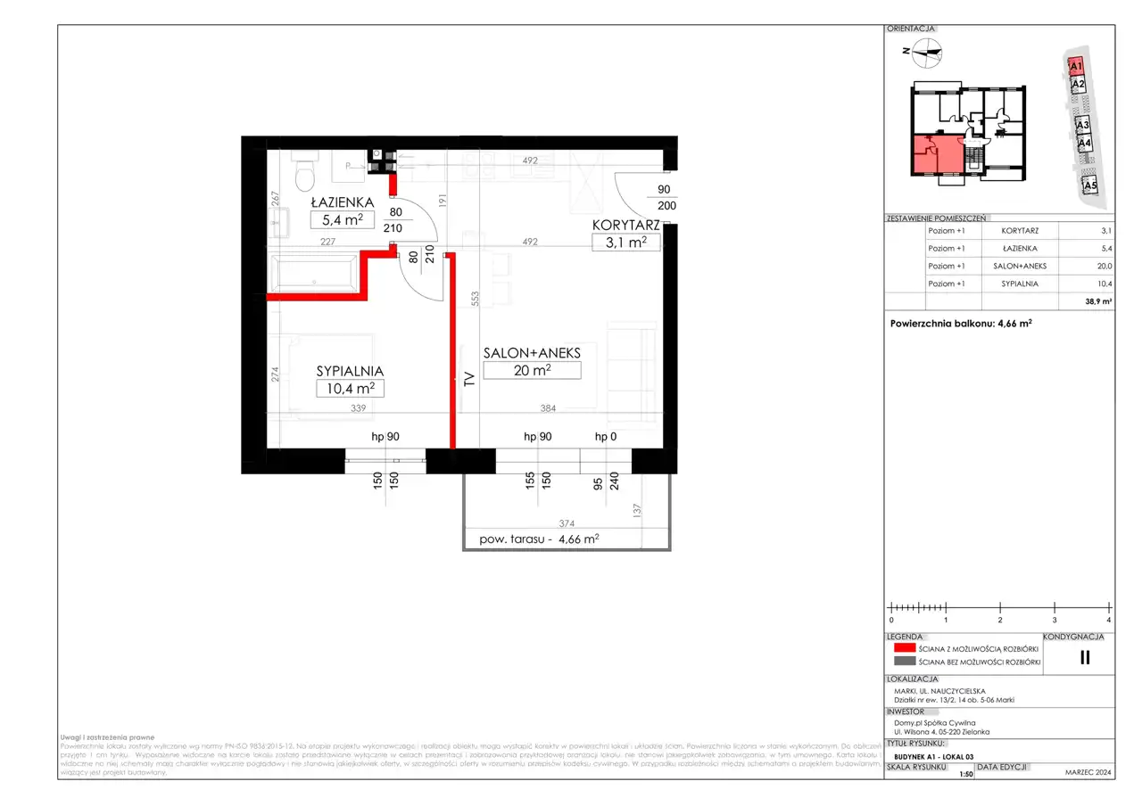 - Charakterystyka mieszkania 38.9 m2, 2 pokoje