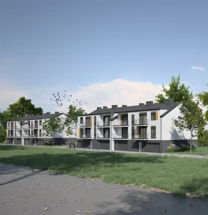 Inwestycja będzie składała się z 5 małych bloków, w każdym po 8 mieszkań, budowanych etapowo. Na tym niewielkim osiedlu, każdy znajdzie dogodne mieszkanie, na miarę swoich potrzeb. Mieszkania na parterze, będą miały duże ogródki, a te na pietrach funkcjonalne balkony. Układ i funkcjonalność poszczególnych mieszkań została starannie zaplanowana. Do mieszkania obligatoryjnie należy dokupić miejsca parkingowe (tutaj też wybór) w garaży (59 000) lub na zewnątrz (24900). Teren będzie częściowo ogrodzony i uporządkowany.