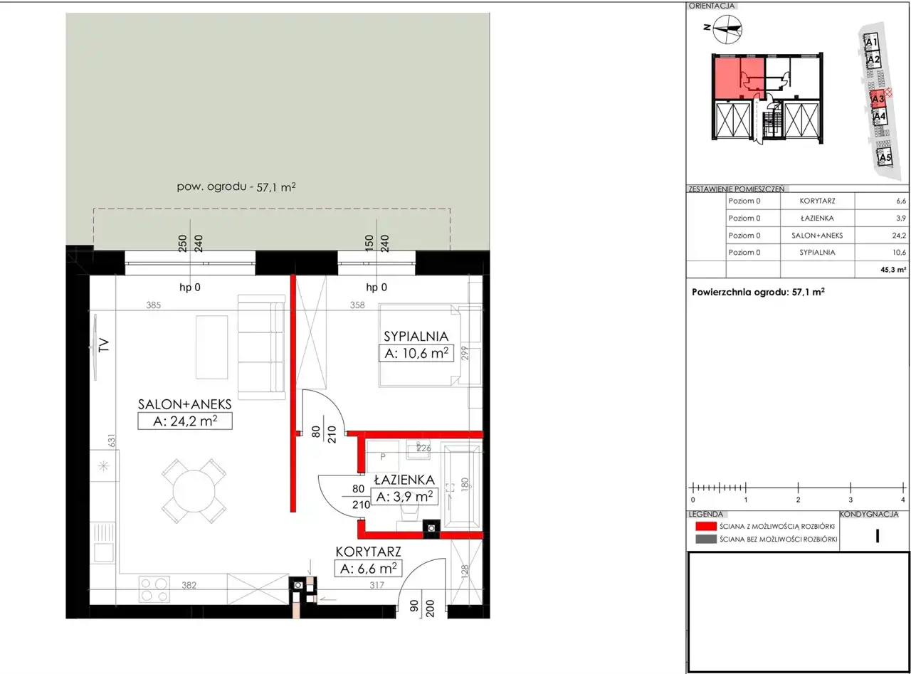 - Charakterystyka mieszkania 45.3 m2, 2 pokoje