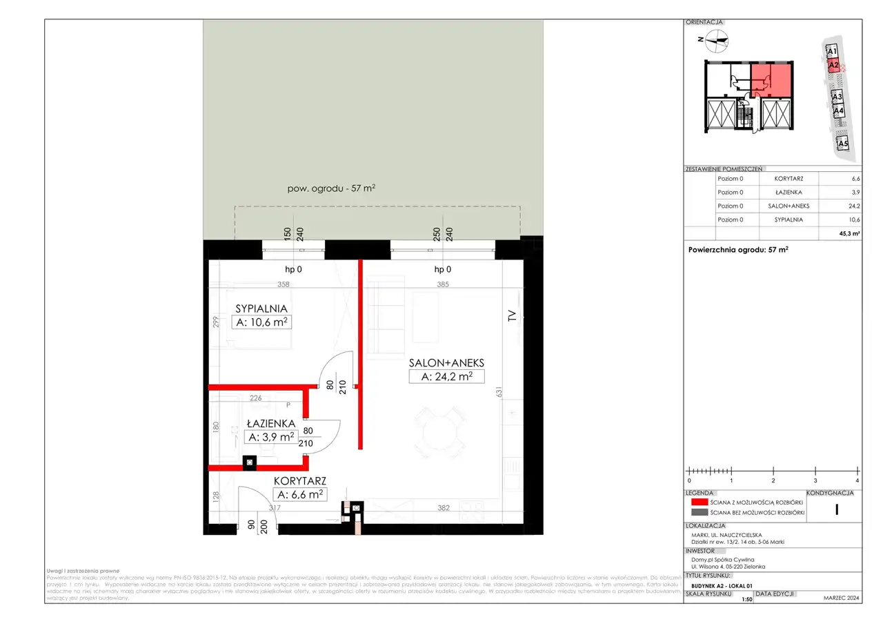 - Charakterystyka mieszkania 45.3 m2, 2 pokoje