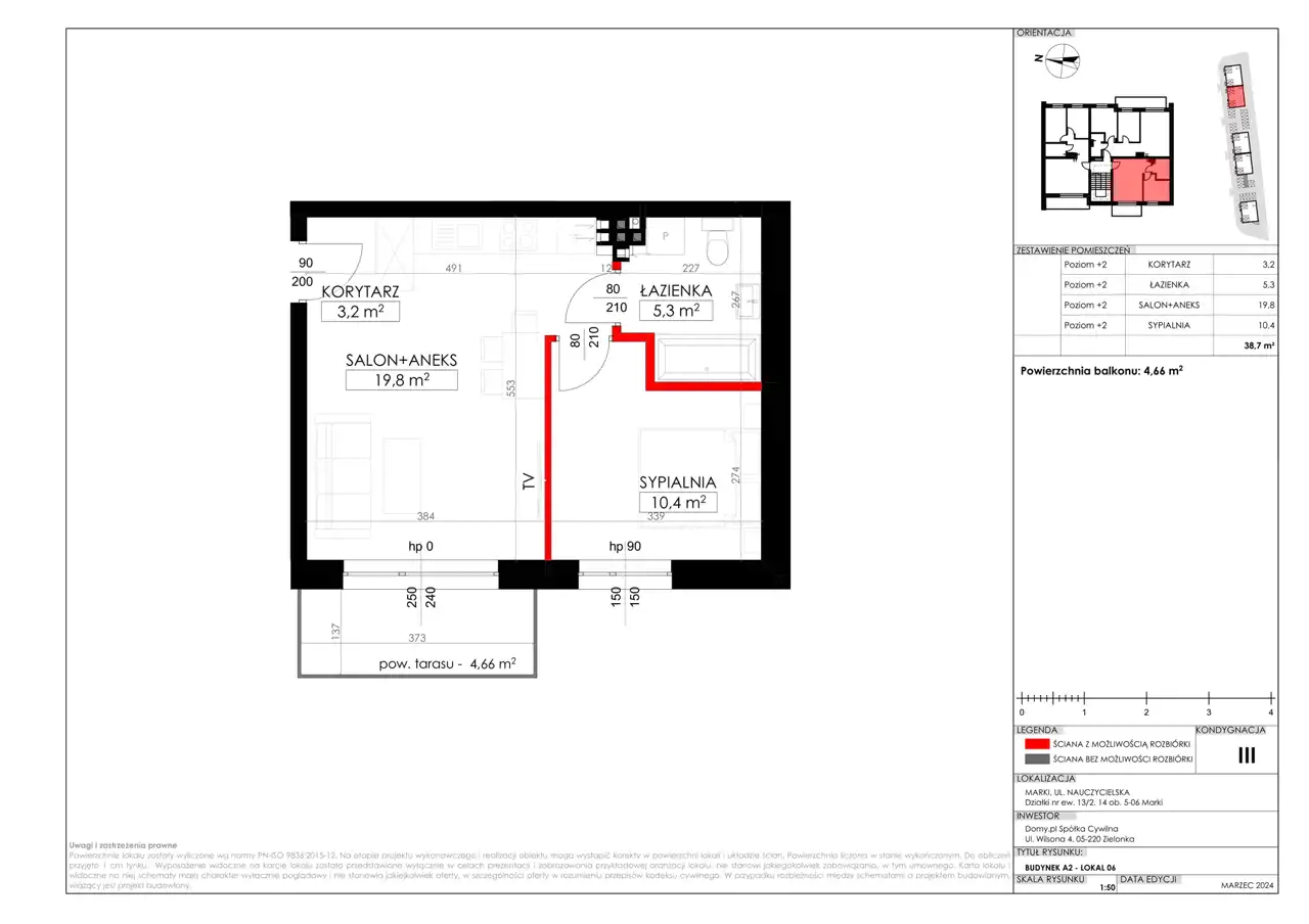 - Charakterystyka mieszkania 38.7 m2, 2 pokoje