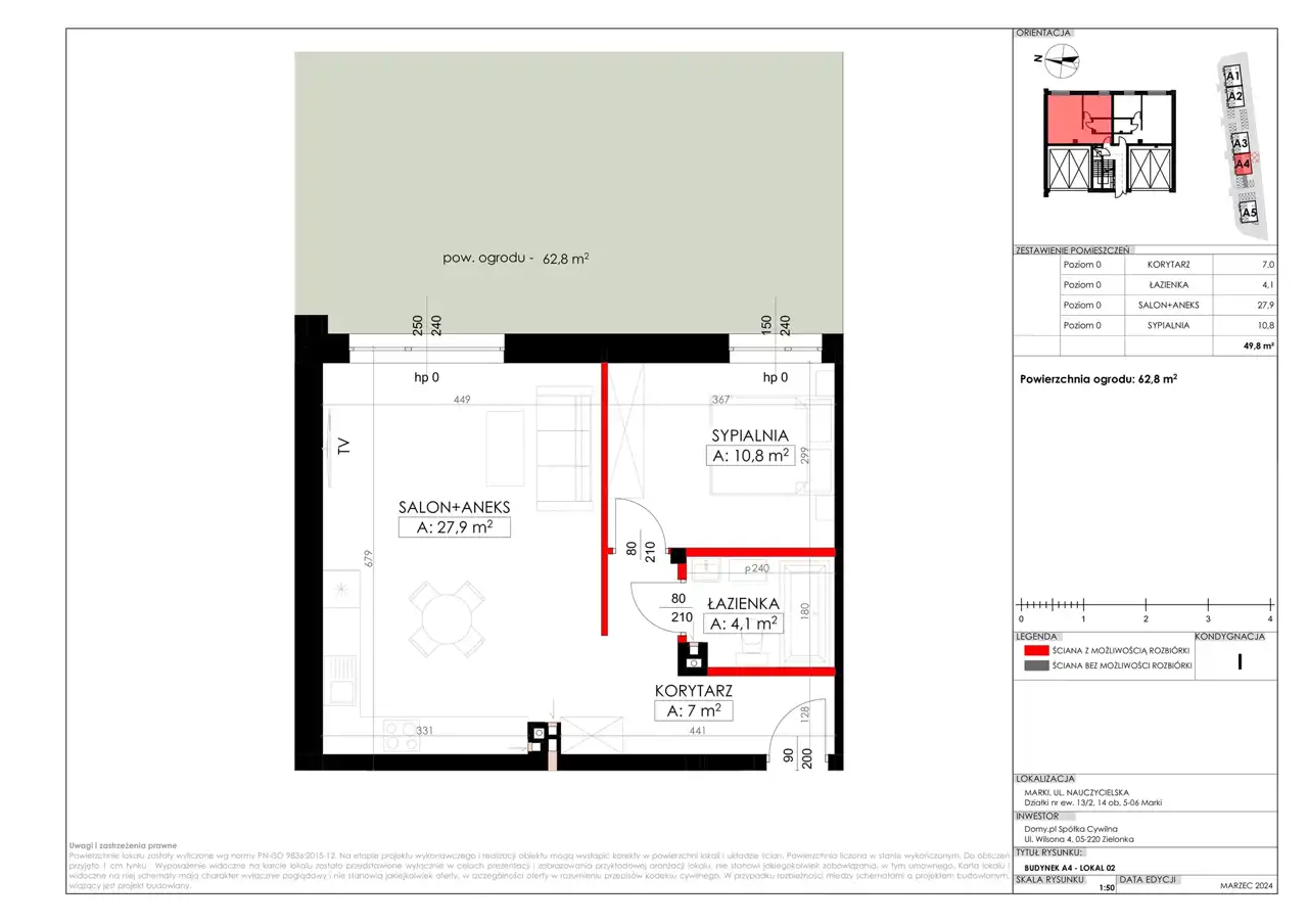 - Charakterystyka mieszkania 49.8 m2, 2 pokoje