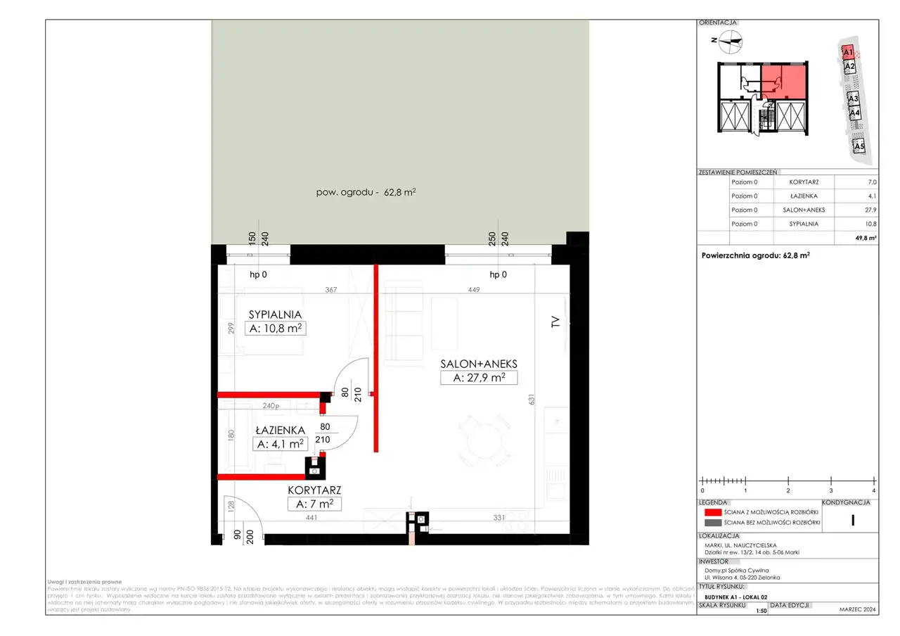 - Charakterystyka mieszkania 49.8 m2, 2 pokoje