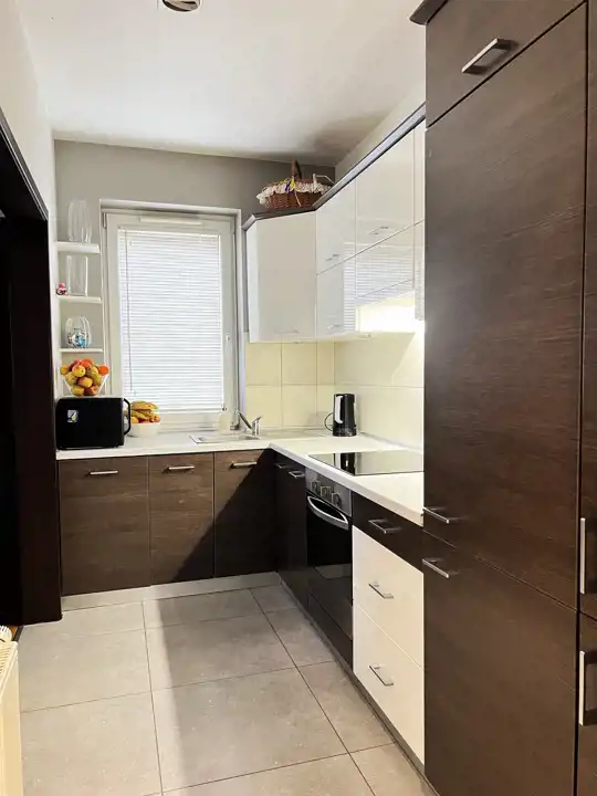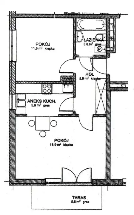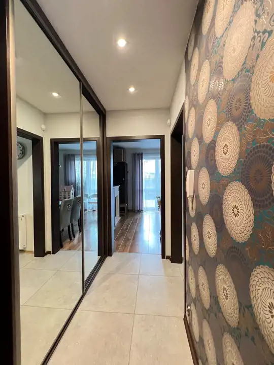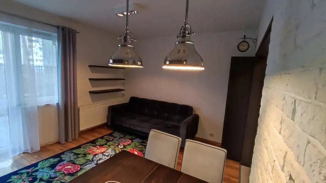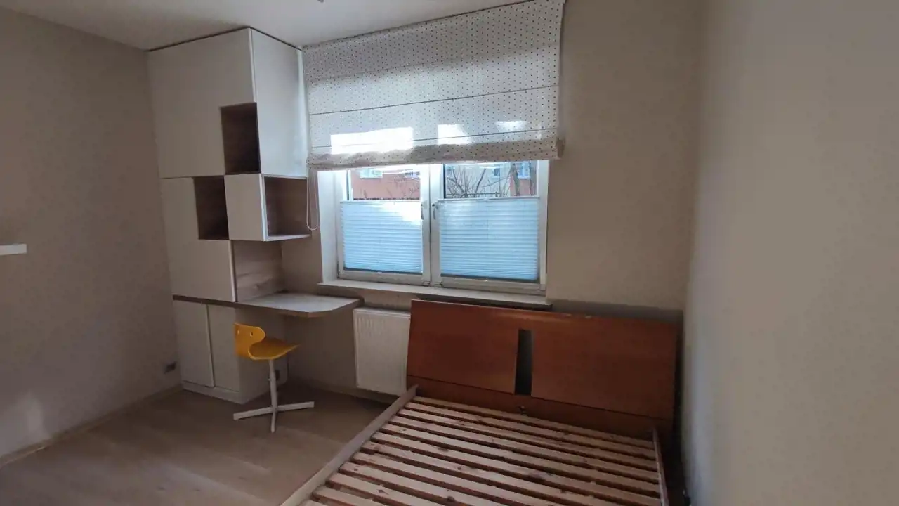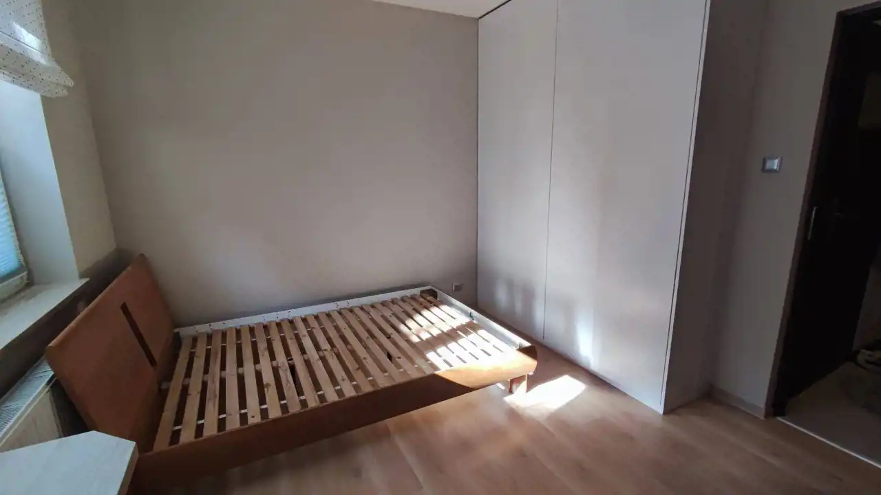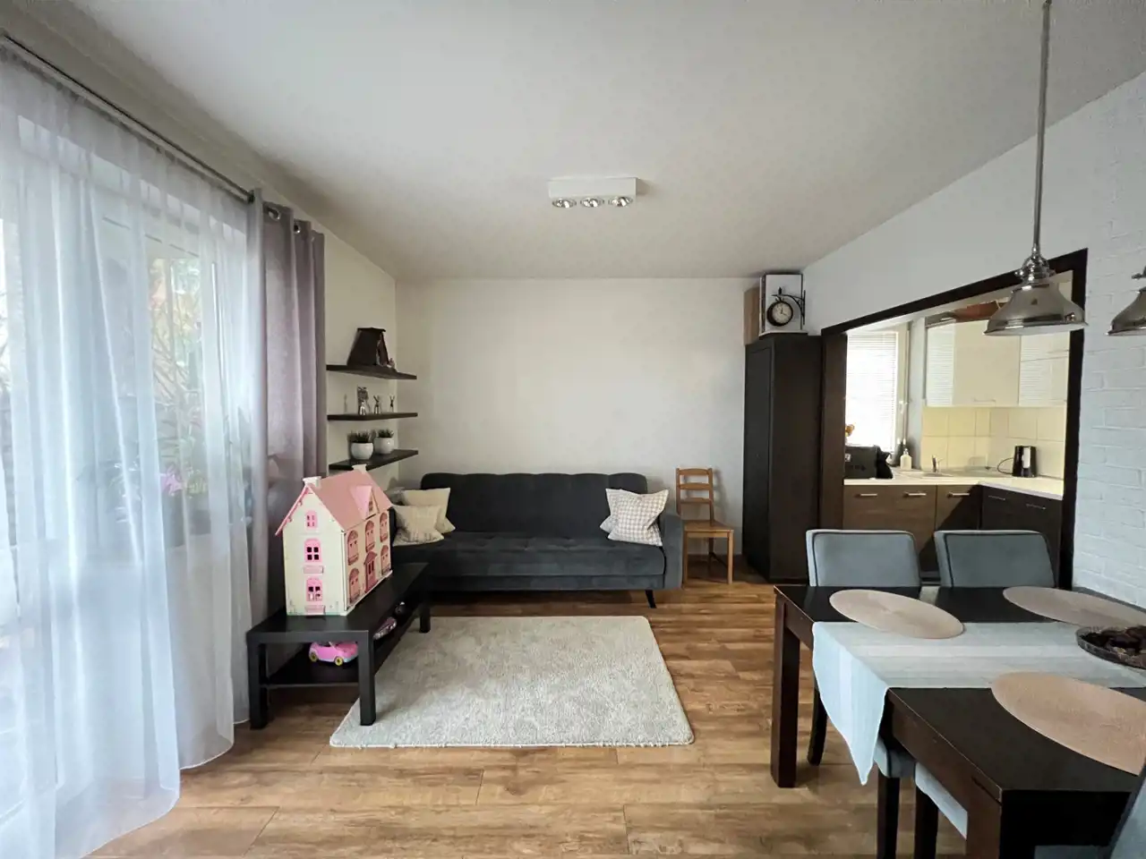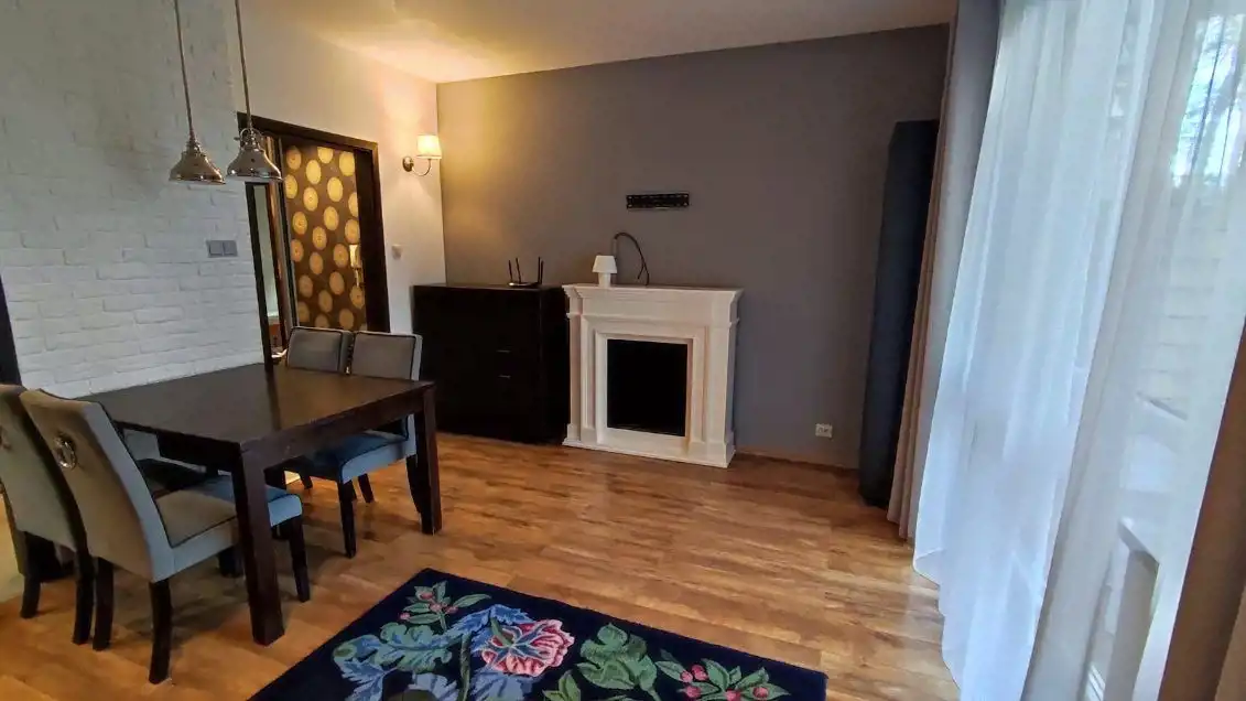 Opisz szczegółowy: Mieszkanie położone na parterze budynku składa się z salonu połączonego z widnym aneksem kuchennym, sypialni, łazienki i przedpokoju. W salonie ładny bio-kominek. Możliwość wydzielenia oddzielnej, widnej kuchni z wejściem z przedpokoju. W całym mieszkaniu meble wykonane na wymiar: zabudowa kuchenna ze sprzętem ADG, duża szafa z lustrzanymi drzwiami w przedpokoju, szafa w sypialni i zabudowa z biurkiem obok okna. W pokojach na podłodze panele. W przedpokoju, kuchni i łazience wymieniona, nowa podłoga - gres. W mieszkaniu instalacja alarmowa.