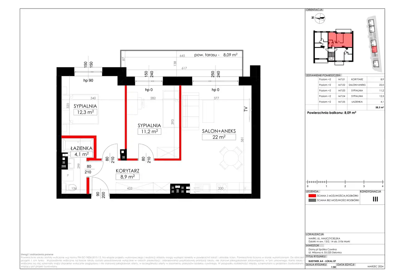- Charakterystyka mieszkania 58.5 m2, 3 pokoje