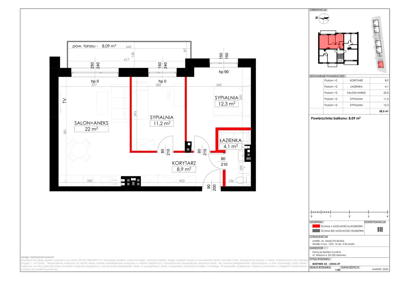 - Charakterystyka mieszkania 58.5 m2, 3 pokoje