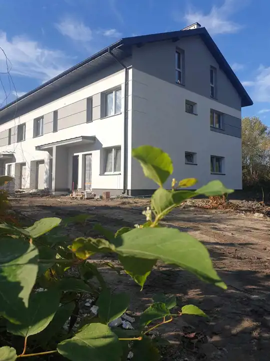 Mieszkanie w zabudowie jednorodzinnej z ogródkiem o powierzchni około 50 m2 i 2 miejscami postojowymi przed budynkiem na terenie wspólnym (zamkniętym). Na poddasze zostały wyprowadzone schody. Przestrzeń ta, to dodatkowe około 31 m2 do własnej aranżacji. Wyprowadzony pion kanalizacyjny zagwarantuje możliwość zrobienia tu np. dodatkowej łazienki, czy też kuchni. Śmiało można zastosować tu układ "mieszkania odwróconego" i kuchnię z salonem zrobić na poddaszu i wykorzystać tą otwartą przestrzeń. Dach będzie ocieplony pianą PUR o grubości około 20cm, zostały zamontowane 4 okna dachowe. W skład inwestycji wchodzą 4 mieszkania o zróżnicowanej wielkości i 2 segmenty. Teren będzie ogrodzony i uporządkowany.