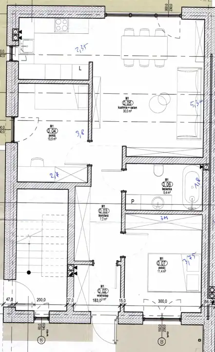 - Charakterystyka mieszkania 67.7 m2, 3 pokoje