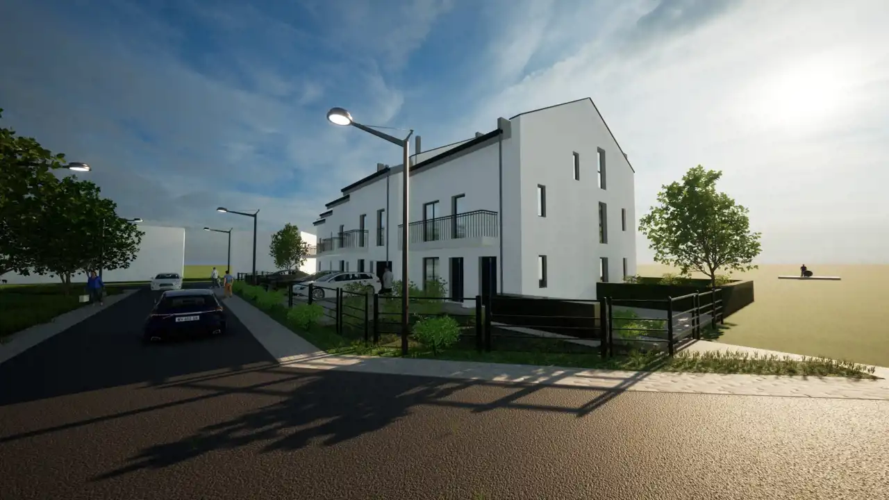 Mieszkanie w zabudowie jednorodzinnej z ogródkiem o powierzchni około 75 m2 i 2 miejscami postojowymi przed budynkiem na terenie wspólnym (zamkniętym). W skład inwestycji wchodzą 4 mieszkania o zróżnicowanej wielkości i 3 segmenty środkowe z garażami. Teren będzie ogrodzony i uporządkowany.