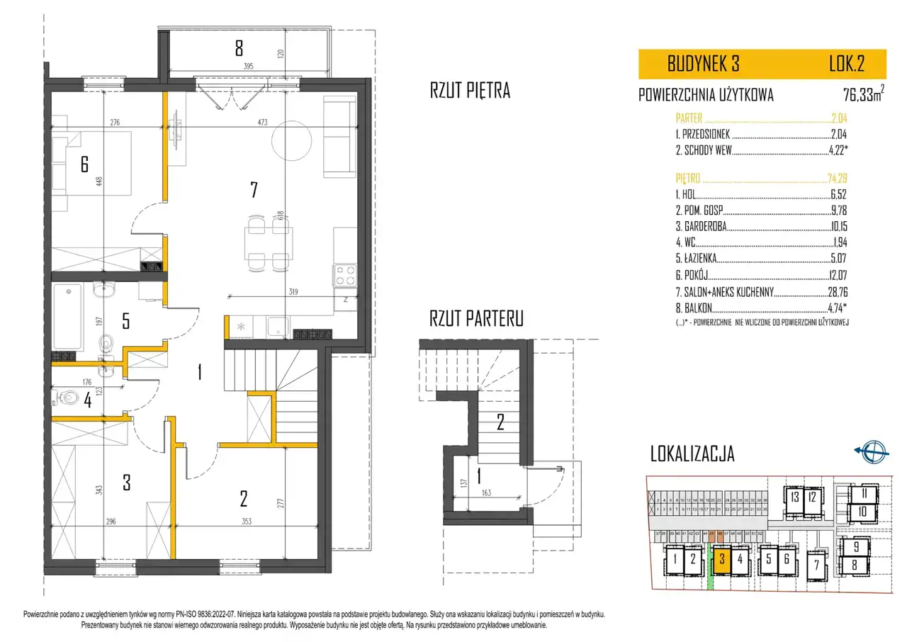 - na piętrze - 4 pokoje 76,33 m2 z balkonem (zabudowana klatka schodowa)-CENA: od 731.000 zł do 780.000zł.