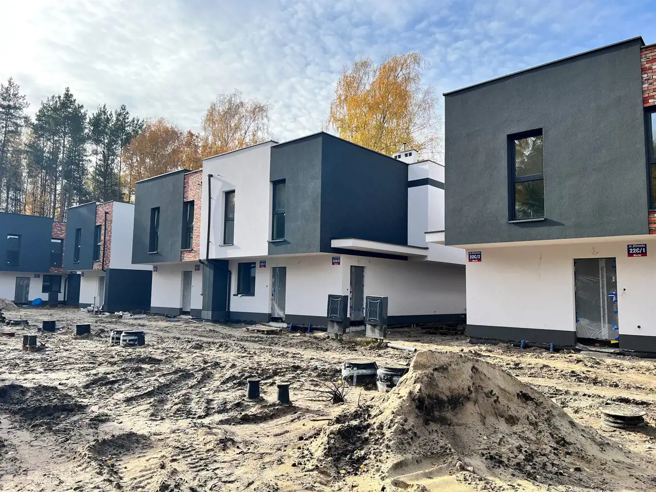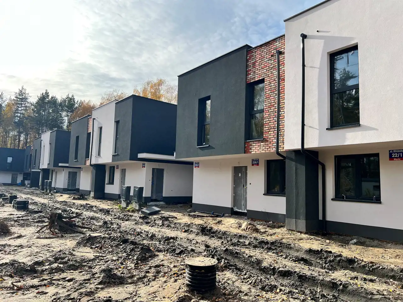 STANDARD: lokale oddawane w stanie deweloperskim. Wszystkie media miejskie: gaz, prąd, woda, kanalizacja. Ściany zewnętrzne wykonywane z bloczka ceramicznego typu Owczary Termoton gr. 19cm, ściany dylatacyjne wykonywane z bloczka ceramicznego typu Owczary Termoton gr. 2x19cm, ściany działowe (silikat, gazobeton lub ceramika) gr 12cm. Strop nad parterem i I piętrem żelbetowy. Wykończenie ścian wewnętrznych – tynki gipsowe. Tynki zewnętrzne –silikonowe na ociepleniu ze styropianu grubości 15cm.Stolarka okienna –PCV 6 komorowe, trzyszybowe. Stolarka drzwiowa – drzwi wejściowe stalowe z elementami przeszklenia. Balustrady ze stali – ocynkowane i malowane. Ogrodzenie posesji, brama na pilota, płotki odgradzające ogródki z tyłu budynków. Kostka betonowa i kostka eko w ciągu pieszo–jezdnym oraz miejsca parkingowe przed budynkami. Ogródek do wyłącznego korzystania zakratkowany na Planie Zagospodarowania Terenu wraz z miejscami postojowymi. Ogrzewanie i ciepła woda – z pieca gazowego, kocioł gazowy dwufunkcyjny,z zamkniętą komorą spalania, ze sterowaniem i wyprowadzeniem spalin przewodem powietrzno-spalinowym przez dach budynku. Grzejniki wraz z zaworami termostatycznymi w mieszkaniu. Ogrzewanie podłogowe w głównej łazience i kuchni, wg projektu. Woda z projektowanych przyłączy z sieci miejskie. Ścieki z projektowanych przyłączy z sieci miejskiej. Instalacja elektryczna: przewody miedziane, instalacja wykonana puszkami łączeniowymi, okablowanie do ewentualnej instalacji alarmowej. Instalacja gazowa. Przyłącze elektryczne do budynku ziemne. Instalacje: RTV, alarmowa, domofonowa. Rozprowadzenia do instalacji klimatyzacji w salonie wg odrębnego projektu technicznego. Schody zewnętrzne żelbetowe w stanie surowym oraz balkony w stanie surowym do własnej aranżacji. Stropodach żelbetowy – izolowany styropianem i pokryty papą zgrzewalną.