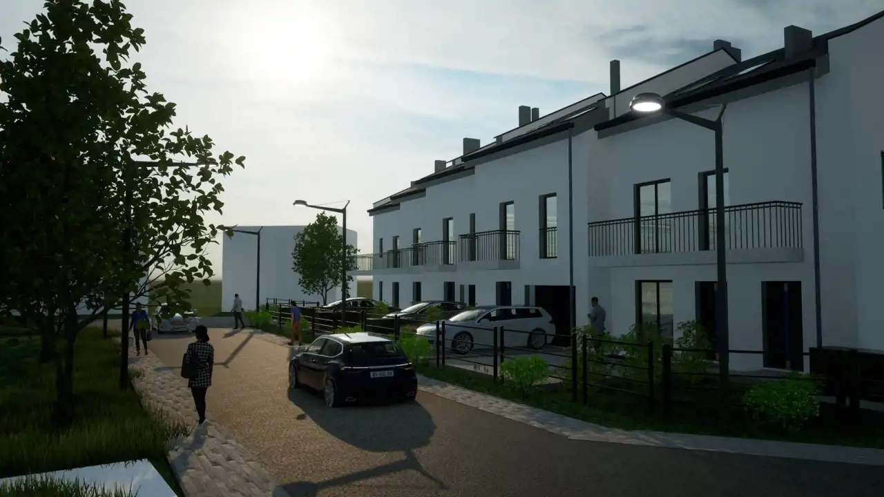 Mieszkanie w zabudowie jednorodzinnej z ogródkiem o powierzchni około 75 m2 i 2 miejscami postojowymi przed budynkiem na terenie wspólnym (zamkniętym). W skład inwestycji wchodzą 4 mieszkania o zróżnicowanej wielkości i 3 segmenty środkowe z garażami. Teren będzie ogrodzony i uporządkowany.
