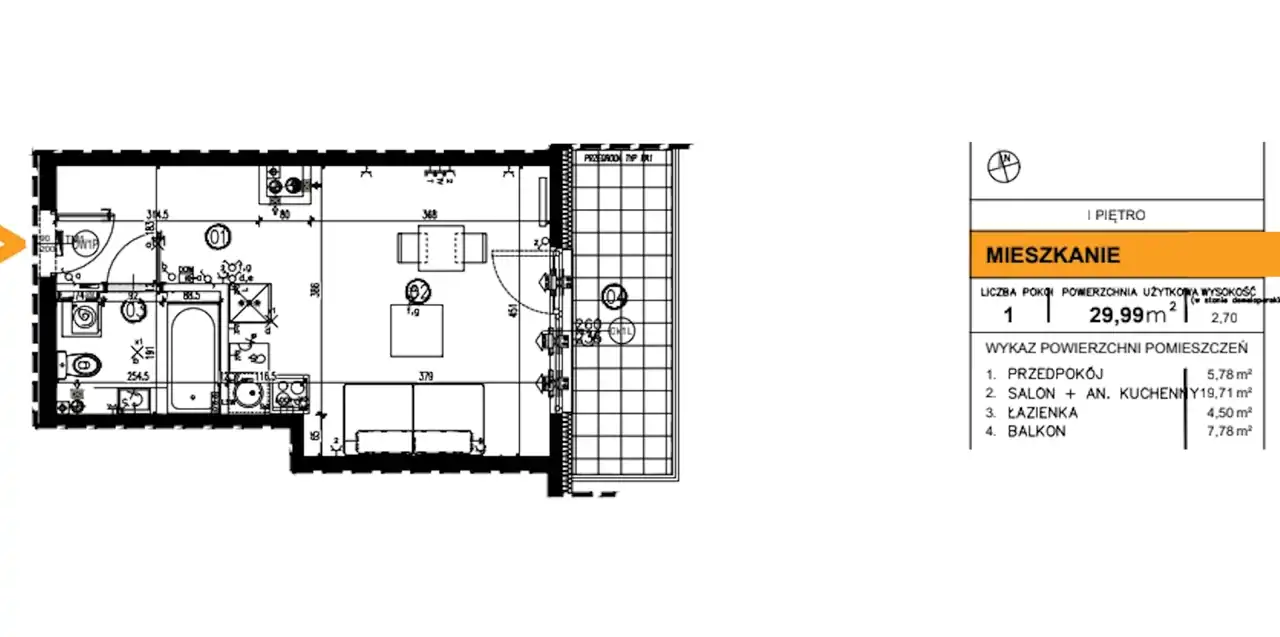 - Duży balkon (pow. 7,78m2) gwarantujący relaks