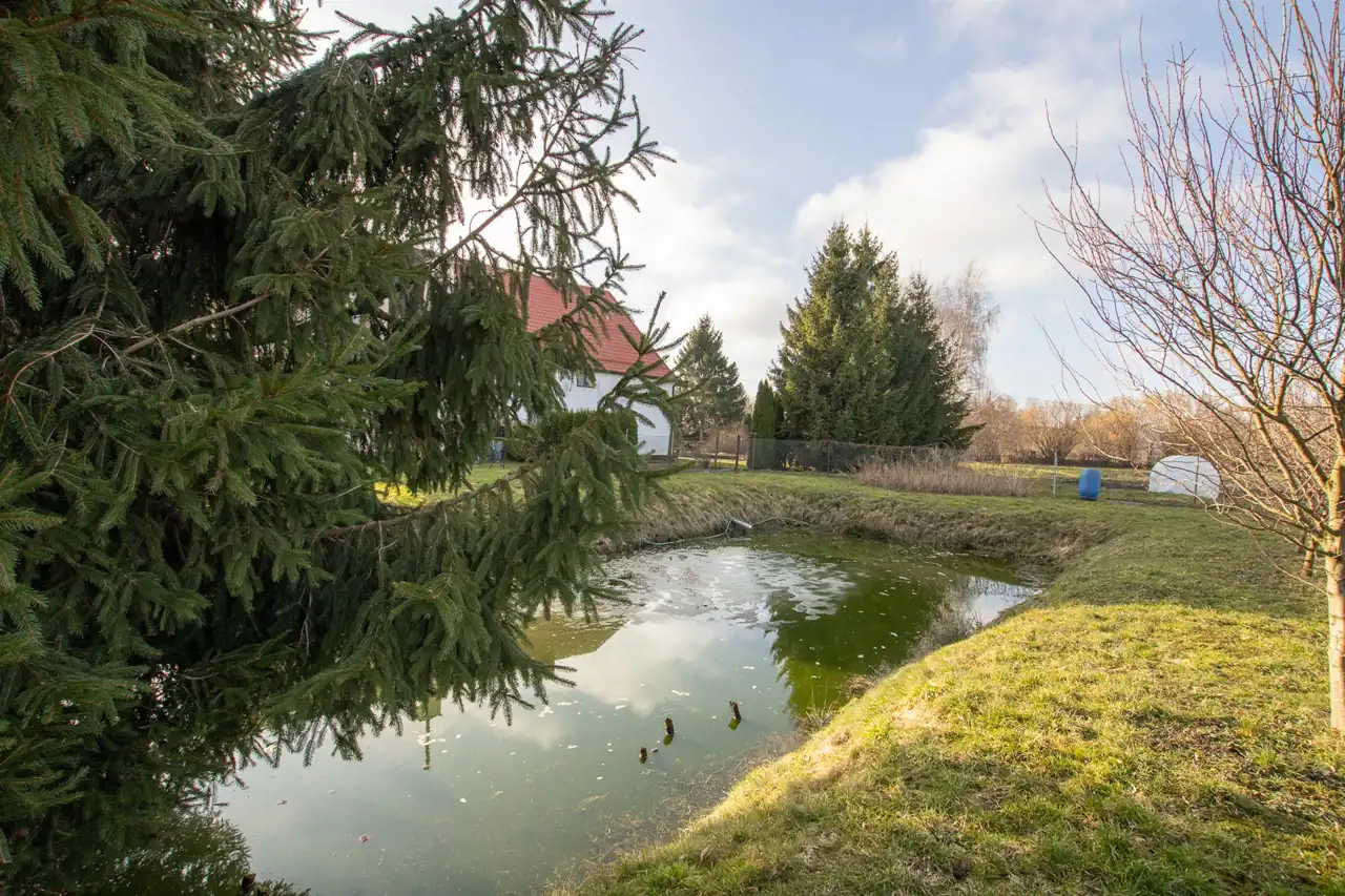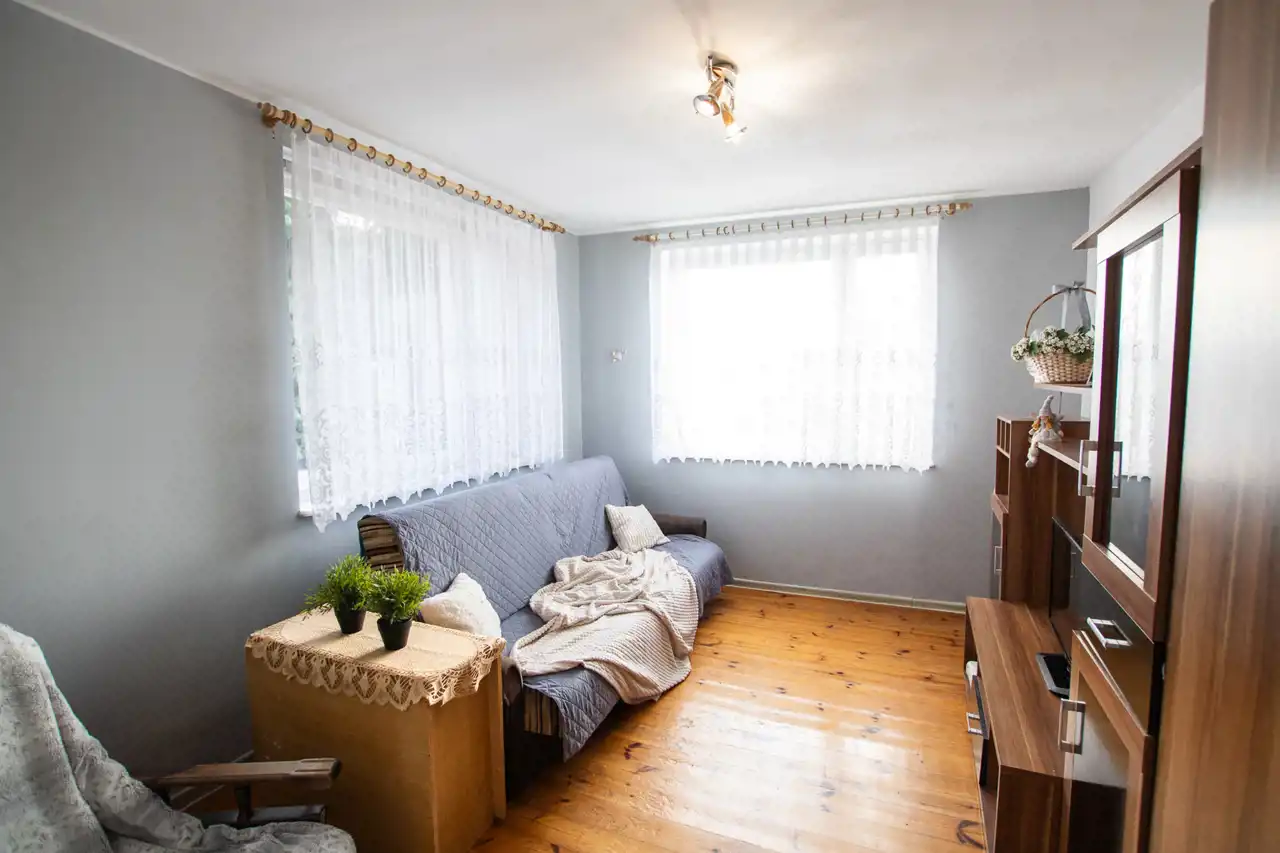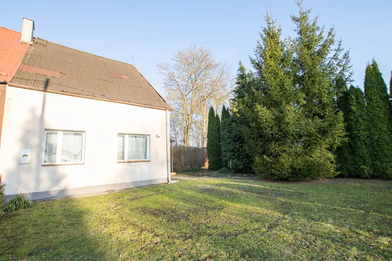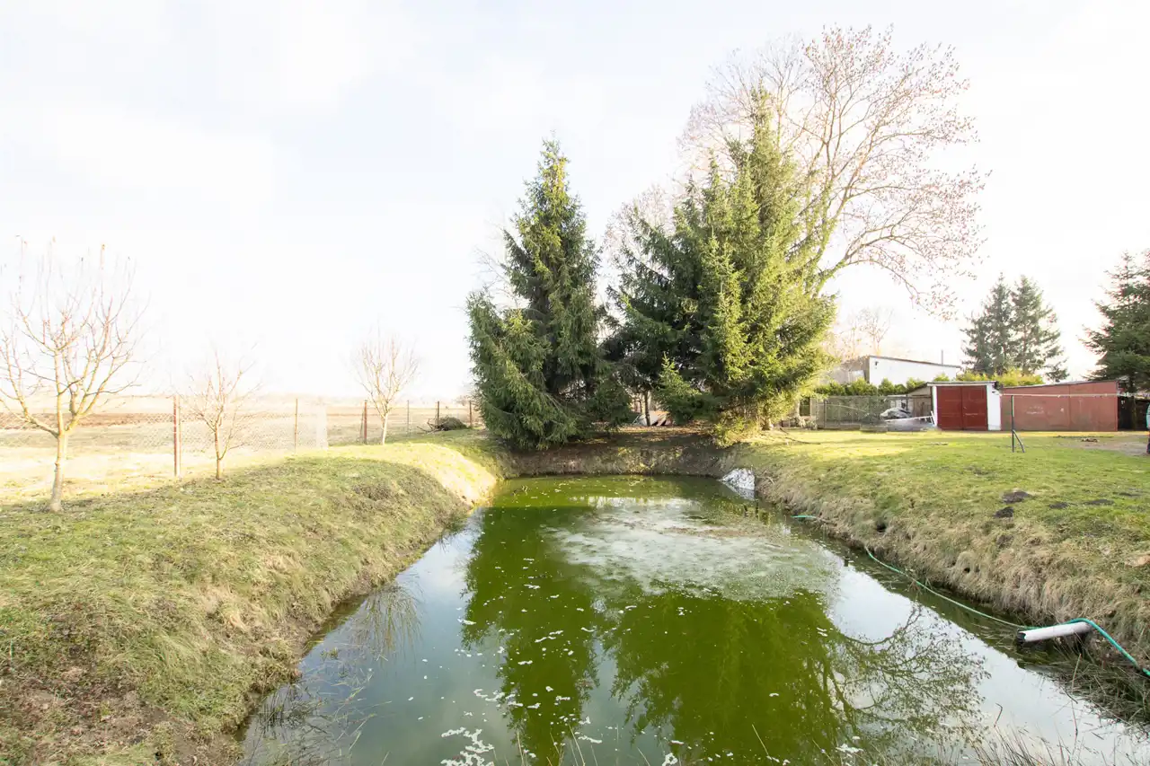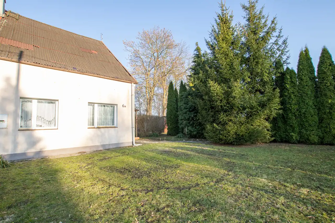Dom składa się z dwóch sypialni, łazienki z WC, naprawdę obszernej kuchni oraz dużego salonu z którego wyjście na taras jest niezwykle wygodnym rozwiązaniem. Duży strych jest potencjałem do rozbudowy i wygenerowania dodatkowej powierzchni mieszkalnej a osobna kotłownia korzystnie wpływa na zachowanie czystości w części mieszkalnej. Na działce znajduje się garaż, kilka nasadzeń oraz własny staw który daje wiele możliwości dla nowego właściciela. Dom wybudowany w latach pięćdziesiątych jest w dobrym stanie technicznym i nie nastręczy żadnych problemów nowemu właścicielowi.