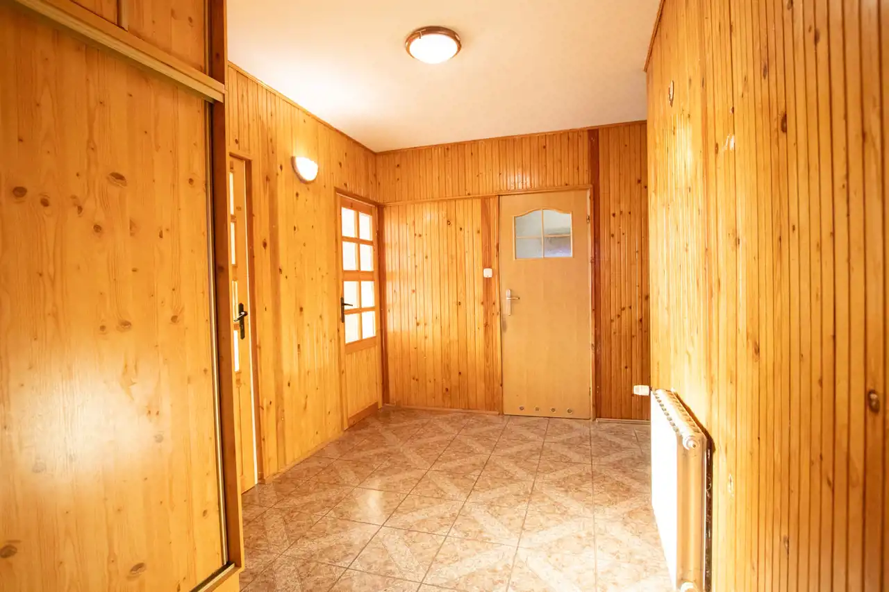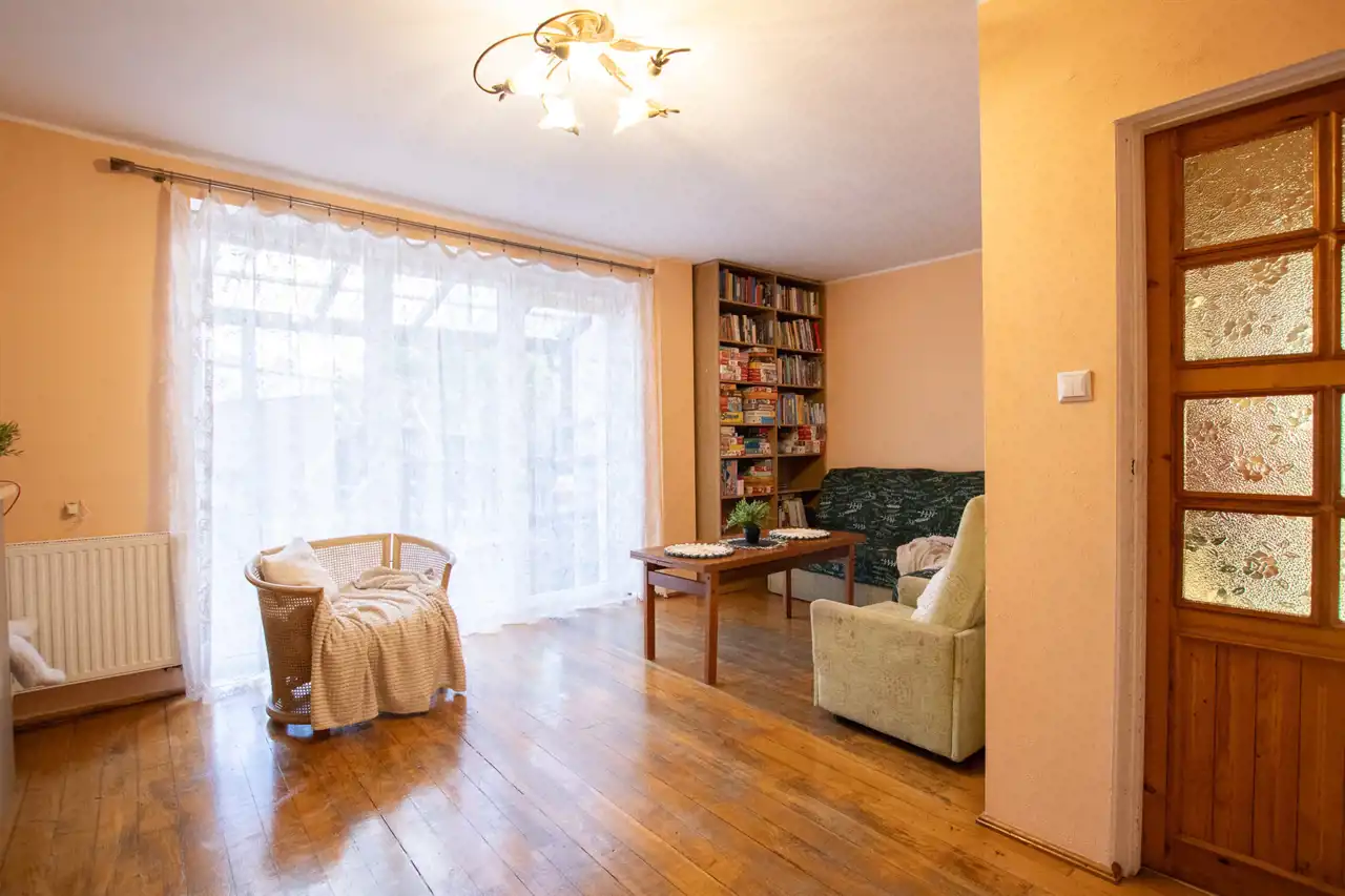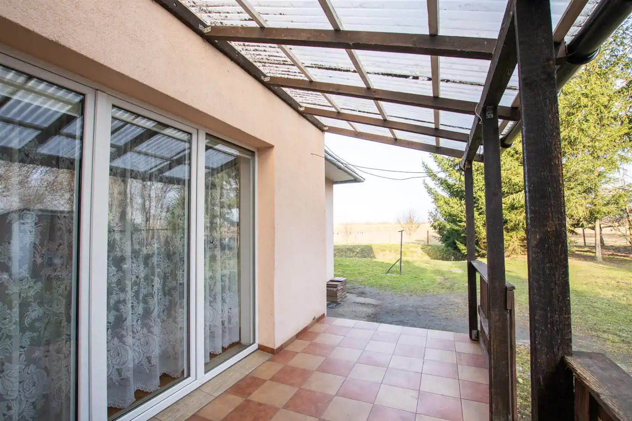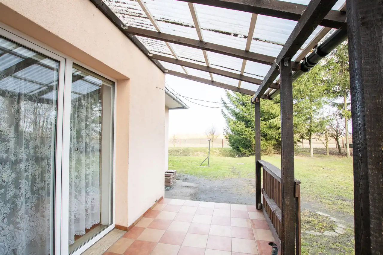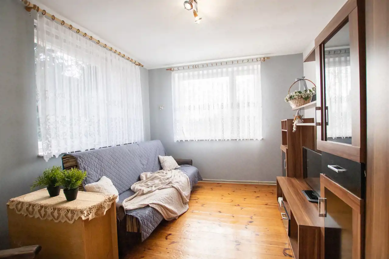 Dom składa się z dwóch sypialni, łazienki z WC, naprawdę obszernej kuchni oraz dużego salonu z którego wyjście na taras jest niezwykle wygodnym rozwiązaniem. Duży strych jest potencjałem do rozbudowy i wygenerowania dodatkowej powierzchni mieszkalnej a osobna kotłownia korzystnie wpływa na zachowanie czystości w części mieszkalnej. Na działce znajduje się garaż, kilka nasadzeń oraz własny staw który daje wiele możliwości dla nowego właściciela. Dom wybudowany w latach pięćdziesiątych jest w dobrym stanie technicznym i nie nastręczy żadnych problemów nowemu właścicielowi.