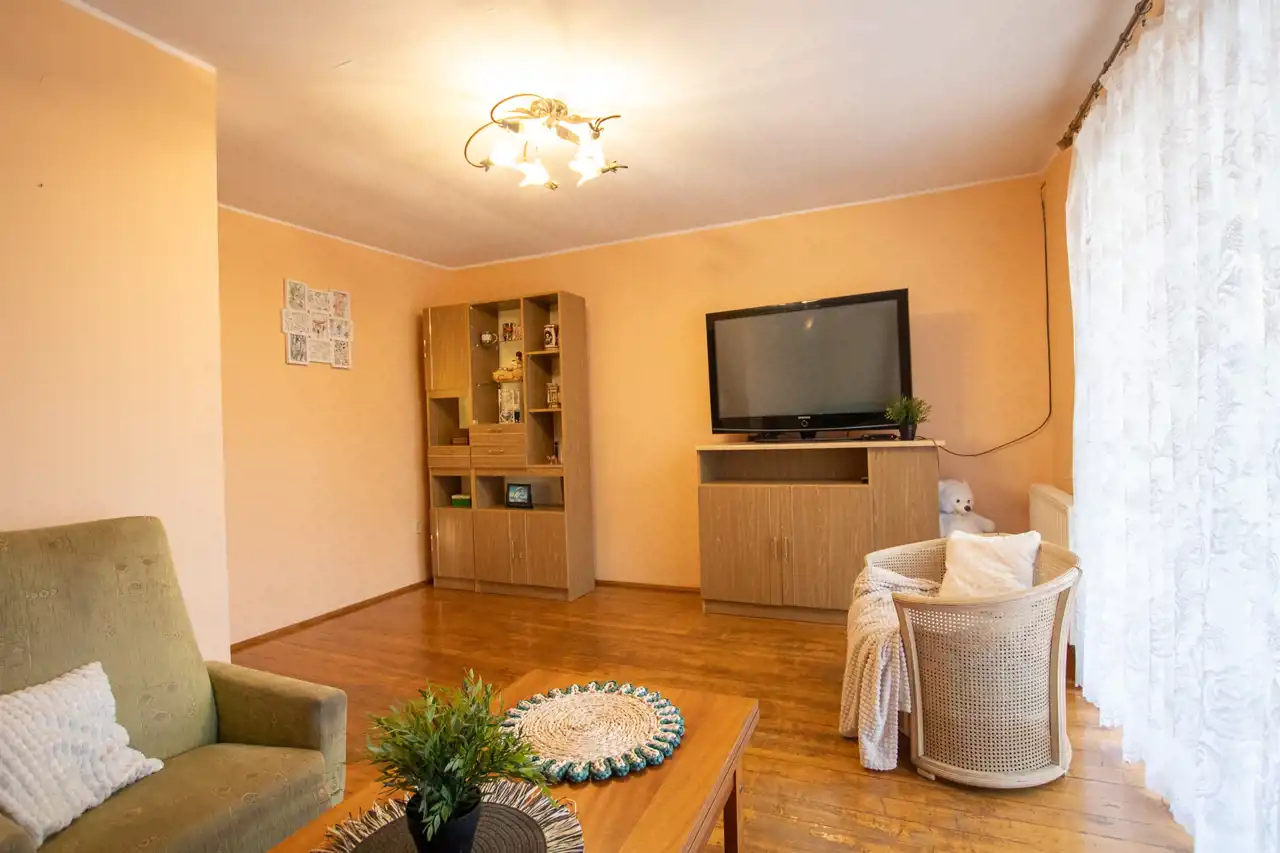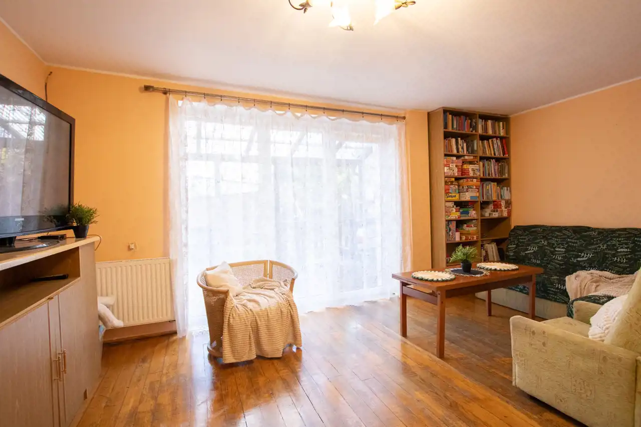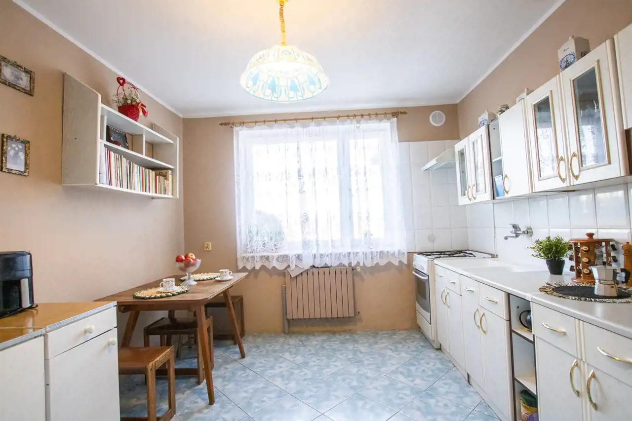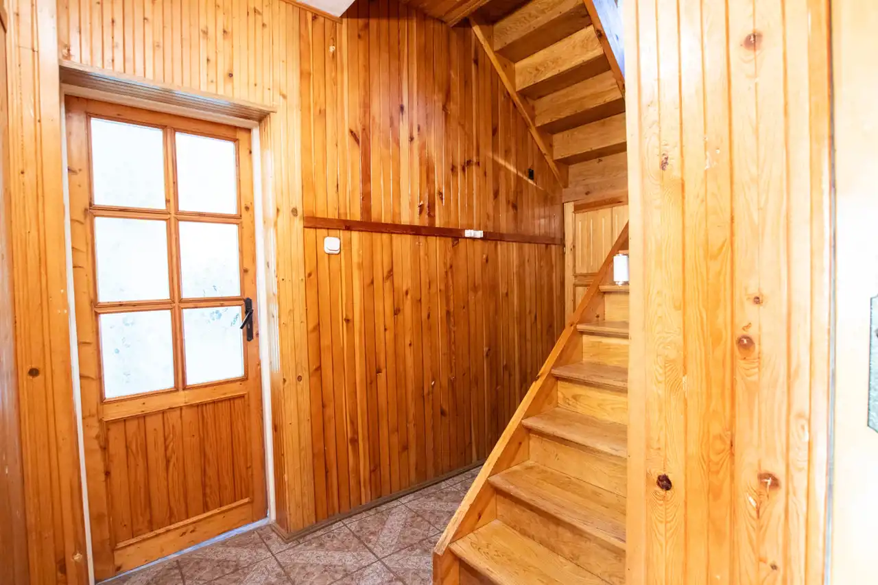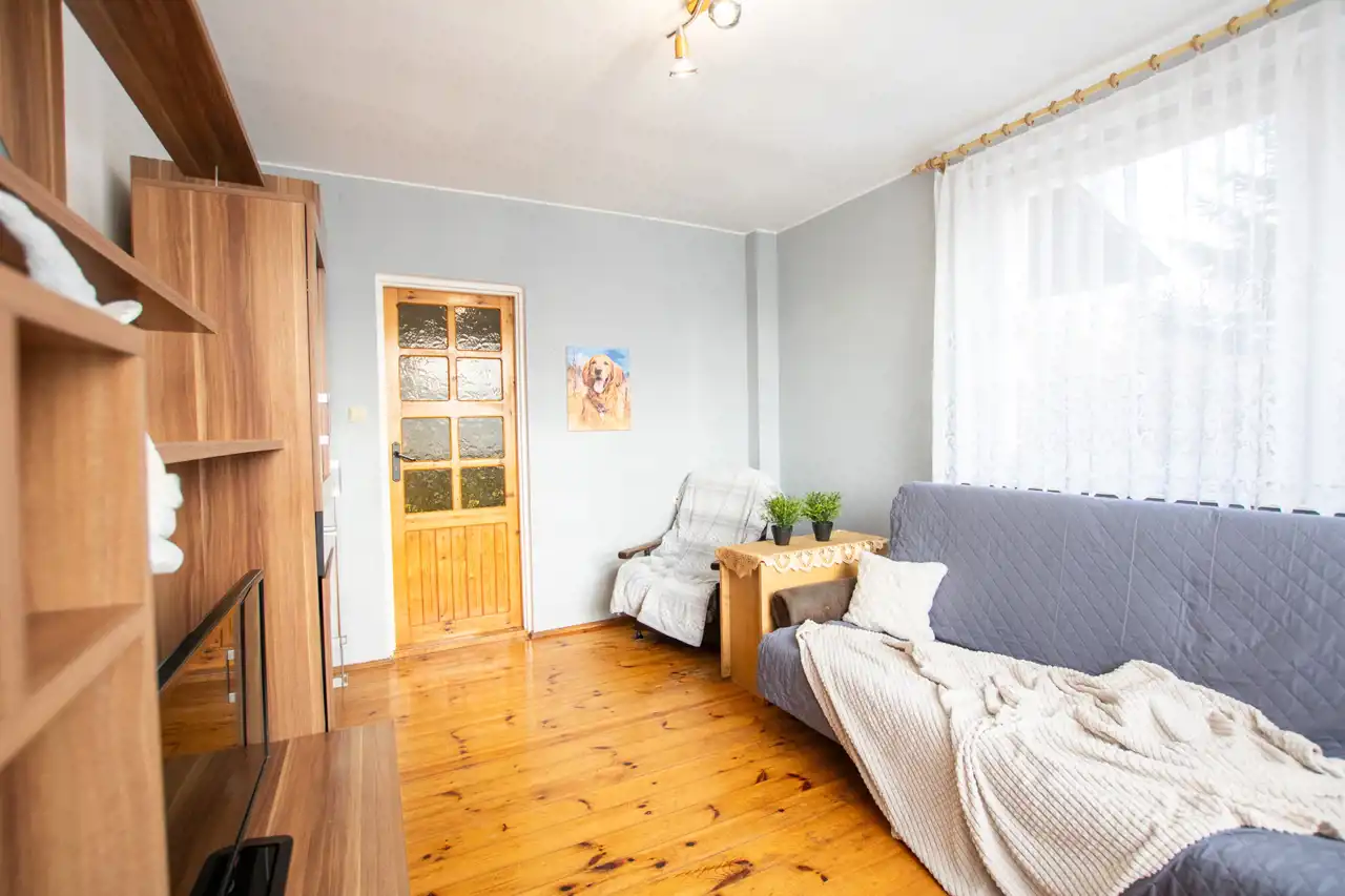 Dom składa się z dwóch sypialni, łazienki z WC, naprawdę obszernej kuchni oraz dużego salonu z którego wyjście na taras jest niezwykle wygodnym rozwiązaniem. Duży strych jest potencjałem do rozbudowy i wygenerowania dodatkowej powierzchni mieszkalnej a osobna kotłownia korzystnie wpływa na zachowanie czystości w części mieszkalnej. Na działce znajduje się garaż, kilka nasadzeń oraz własny staw który daje wiele możliwości dla nowego właściciela. Dom wybudowany w latach pięćdziesiątych jest w dobrym stanie technicznym i nie nastręczy żadnych problemów nowemu właścicielowi.