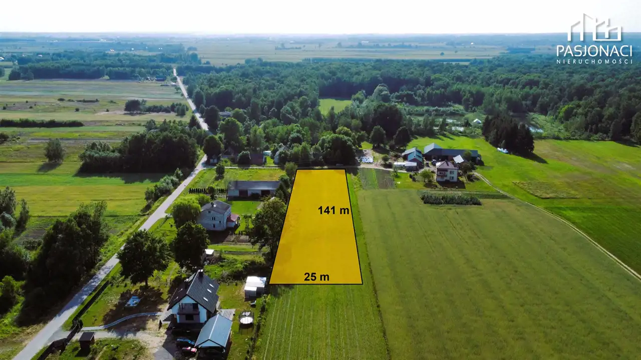 Razem z działką nabywają Państwo udział w wewnętrznej drodze dojazdowej o szerokości 5 m, zaznaczonej na zdjęciach na niebiesko. Stanowi ona oficjalny dojazd do nieruchomości. Nieformalny, lecz krótszy fizyczny dojazd istnieje od południa. Jest to droga szutrowa. Odległość zaledwie 50 m dzieli nieruchomość od asfaltowej drogi gminnej.