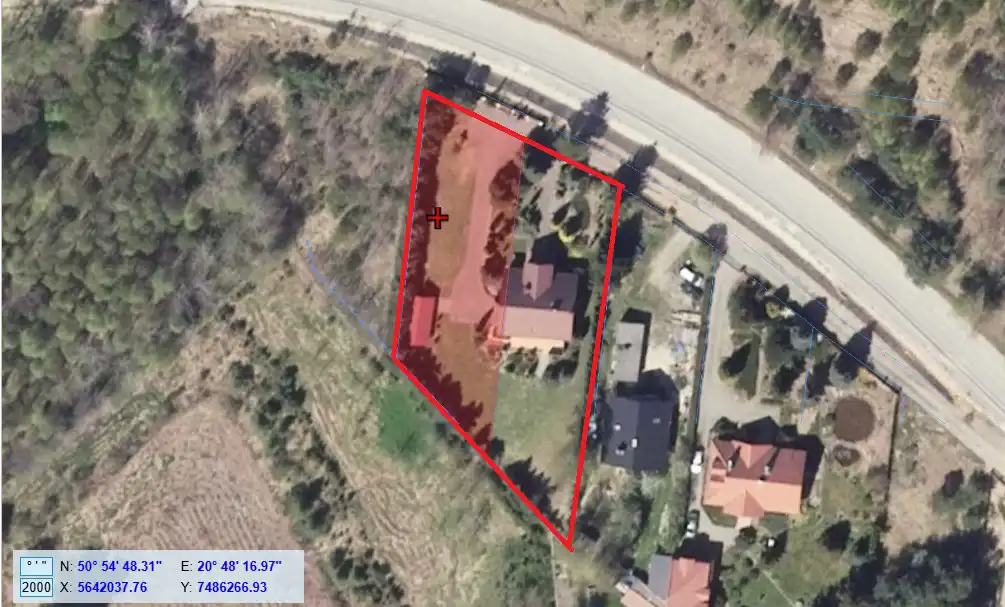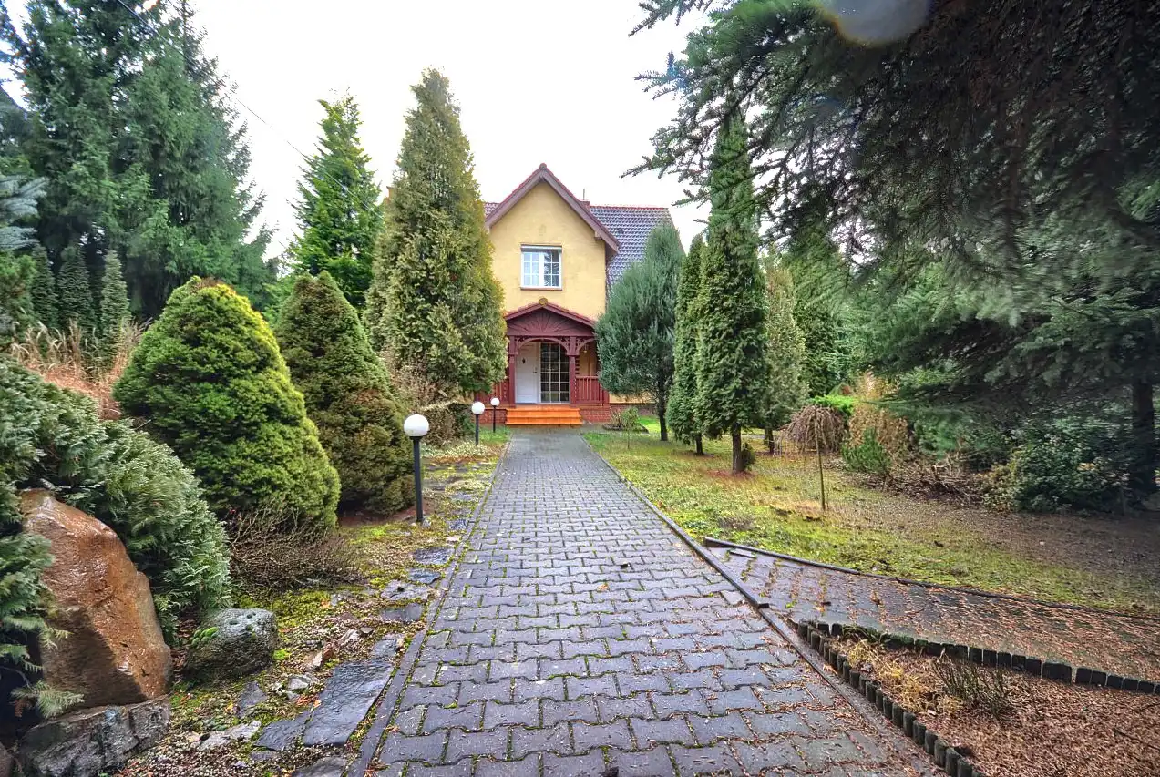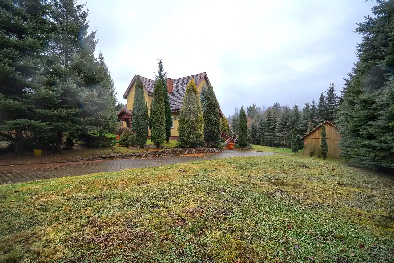 Budynek usytuowany na ogrodzonej, urządzonej i zagospodarowanej działce o pow. 2023m2. Grunt częściowo utwardzony kostką brukową, z licznymi nasadzeniami drzew i krzewów oraz z oczkiem wodnym.