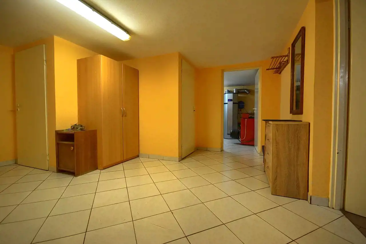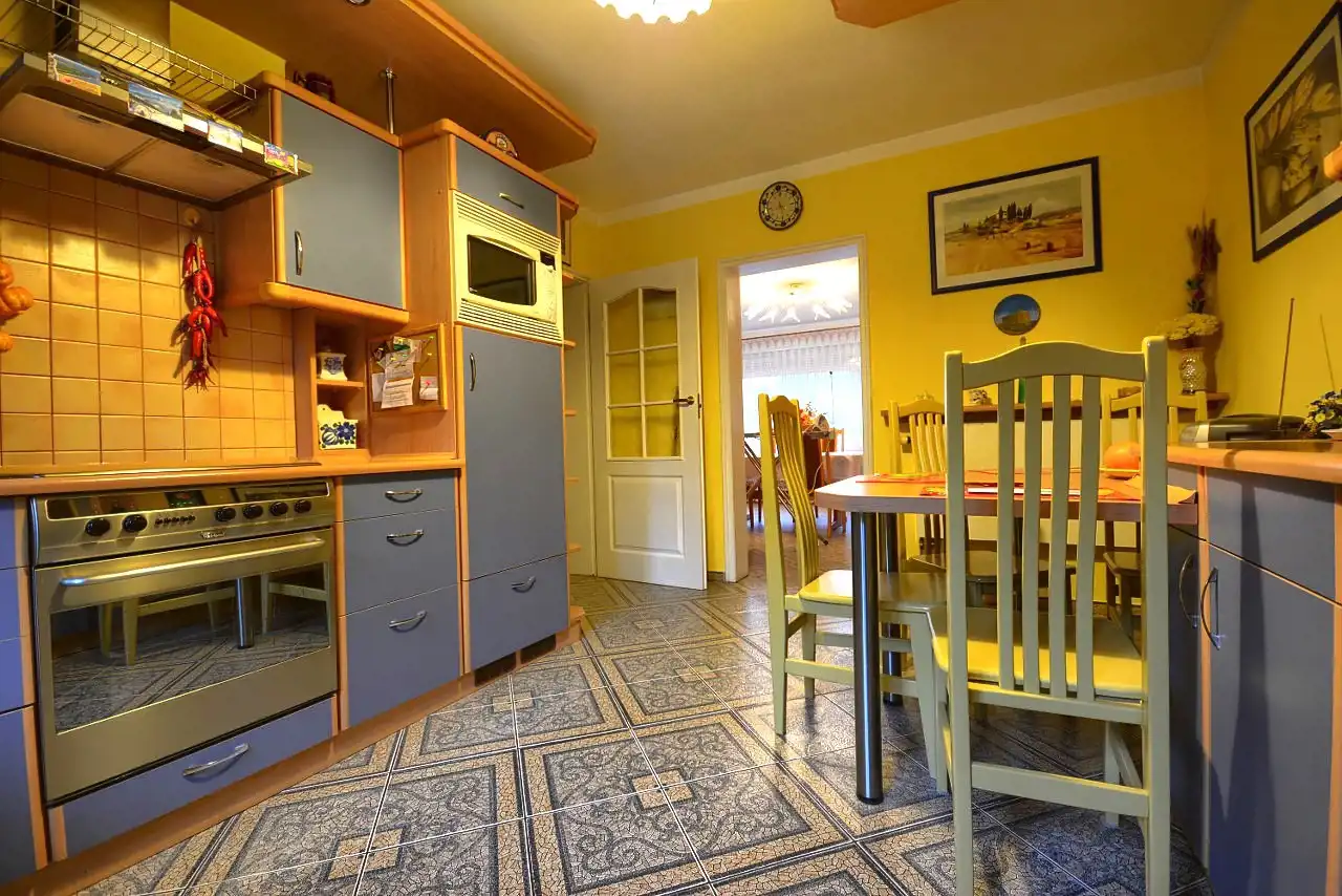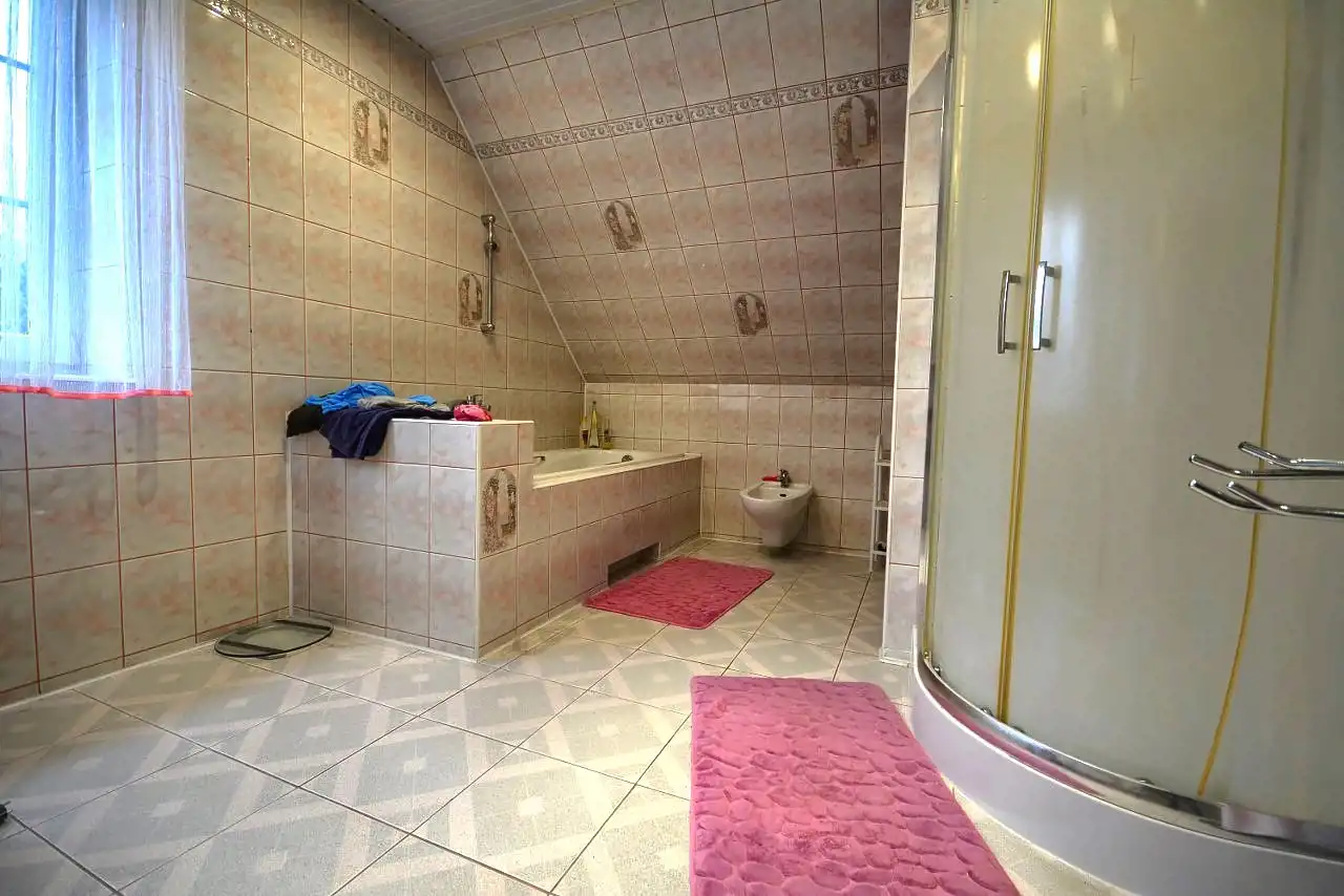The house is built with brick and concrete blocks, insulated with 5 cm of styrofoam inside and 5 cm outside. The roof is covered with concrete tiles. Heating is provided by a pellet and fuel oil furnace.