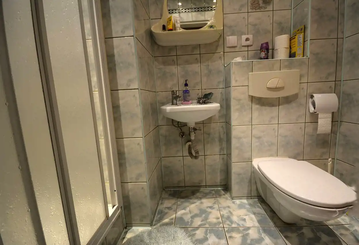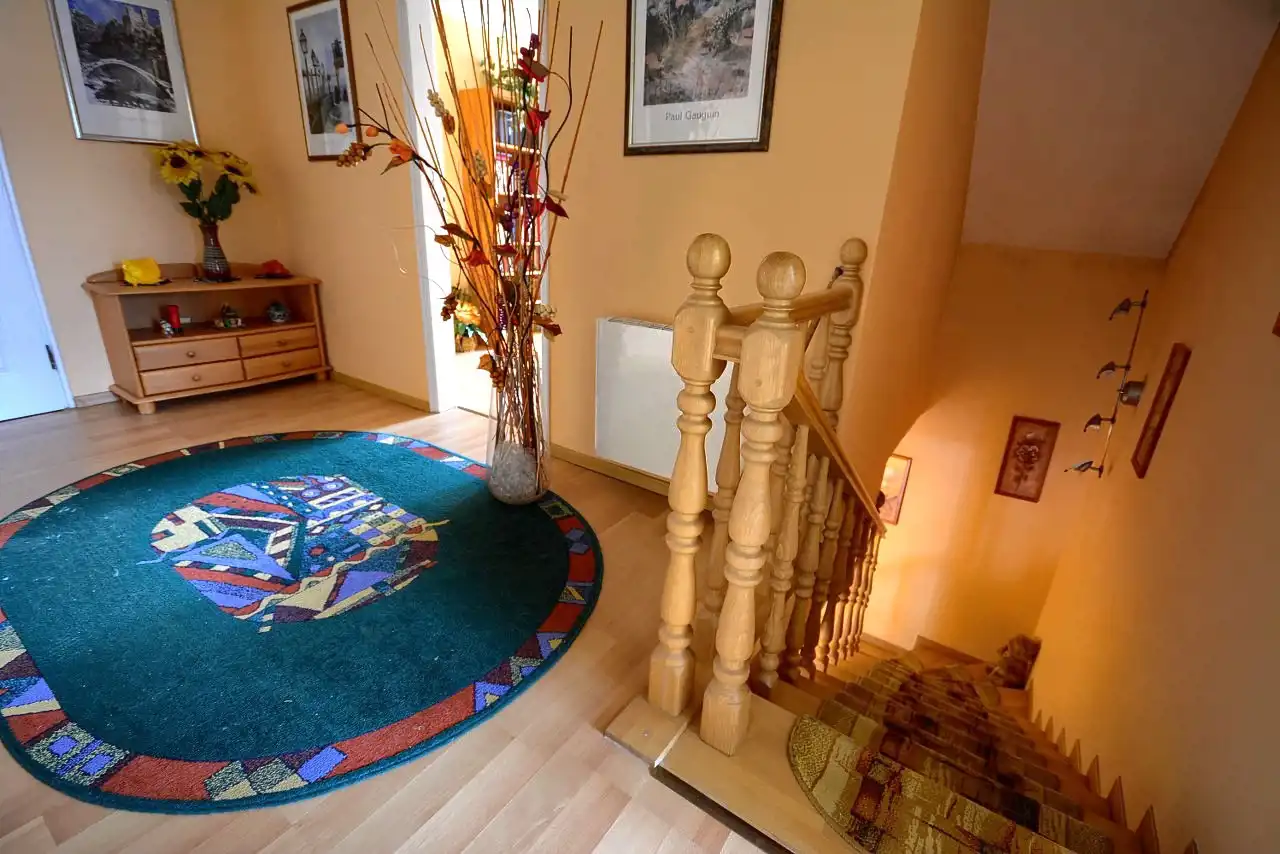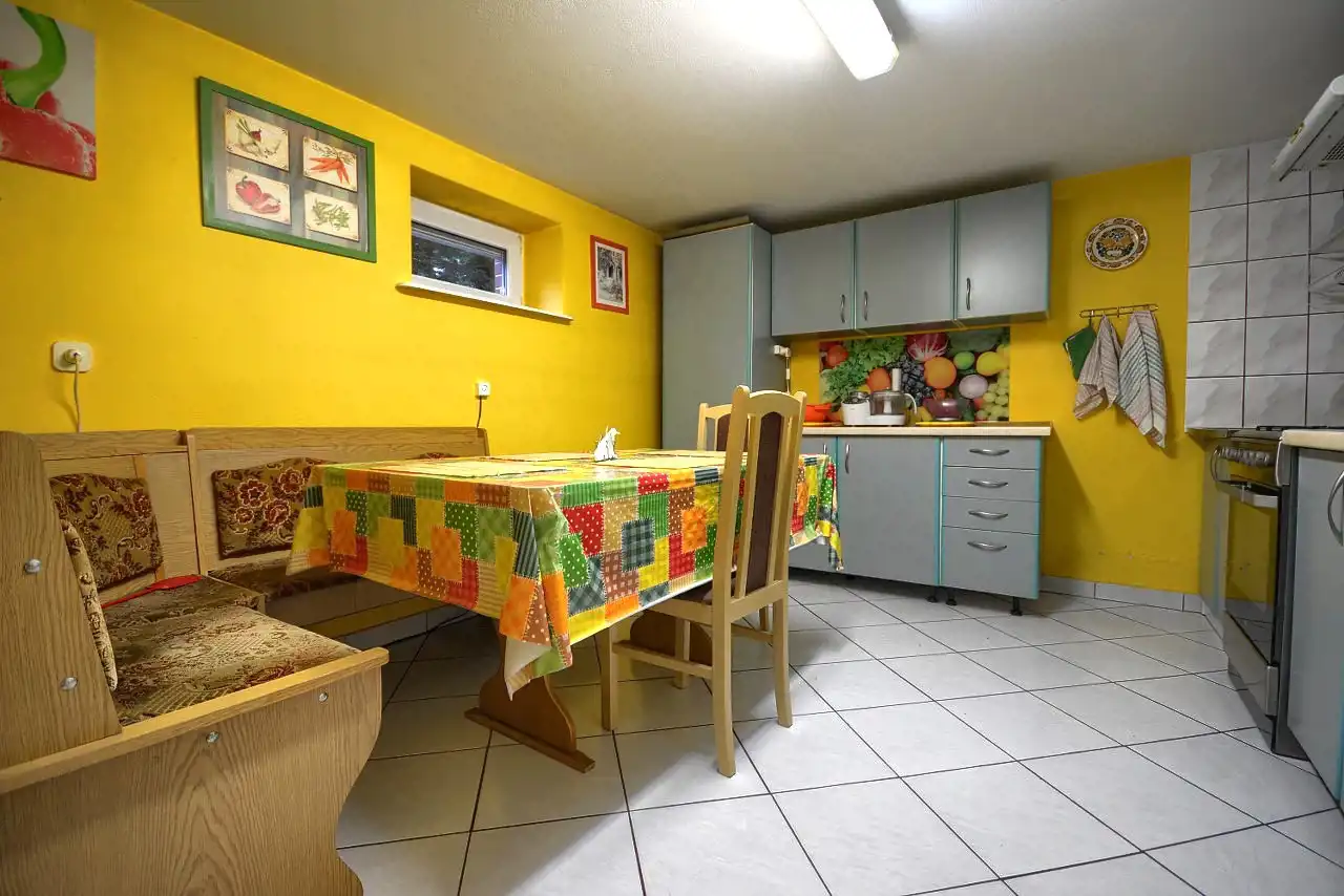 The house is built with brick and concrete blocks, insulated with 5 cm of styrofoam inside and 5 cm outside. The roof is covered with concrete tiles. Heating is provided by a pellet and fuel oil furnace.