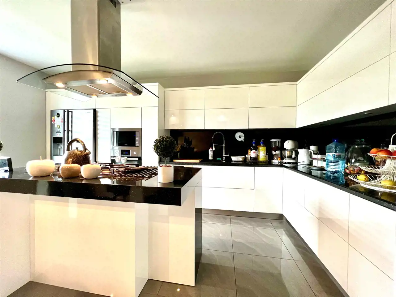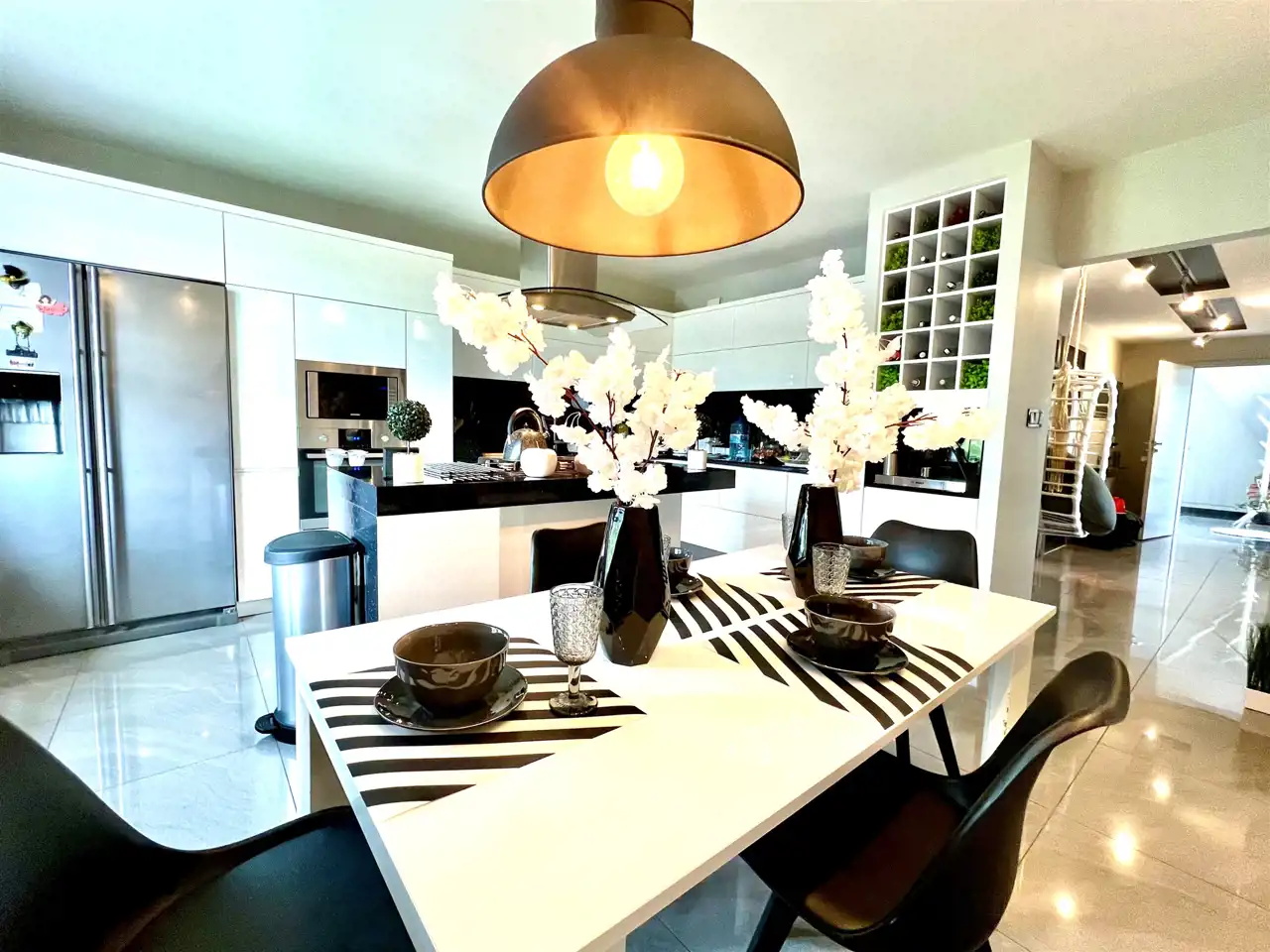 Efektowna kuchnia została wykonana przez renomowaną firmę na wymiar, jest ponadczasowa i robi pozytywne wrażenie.