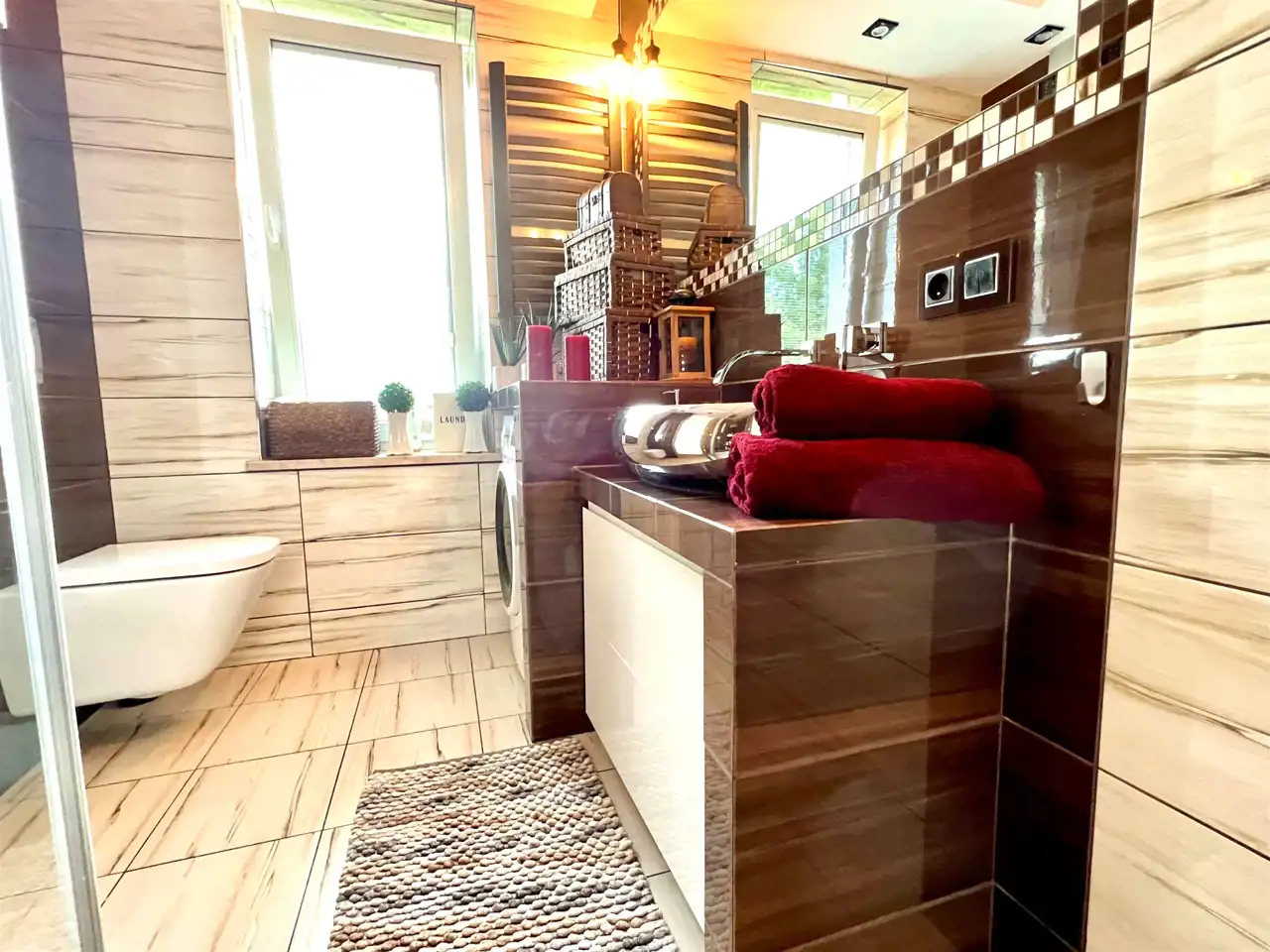 - Dom posiada oprócz sieci wód-kan ekologiczne szambo, do którego można się podpiąć i ograniczać również rachunki za ścieki a co za tym idzie, w ogóle nie mieć kosztów za wodę !